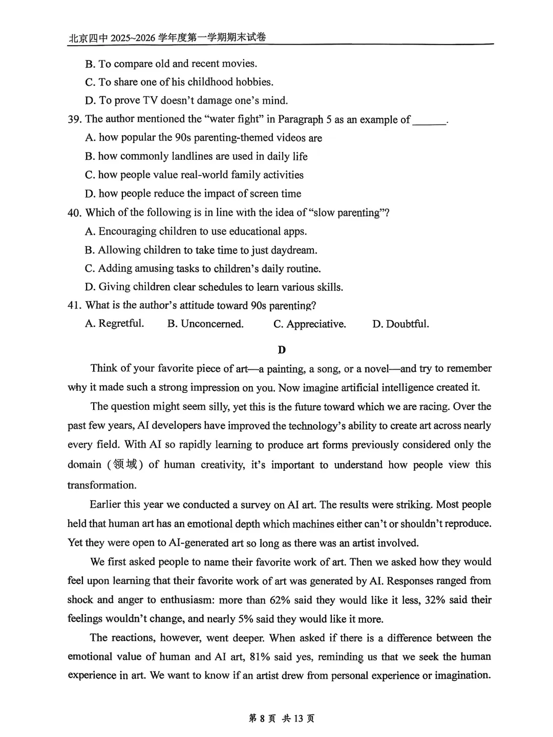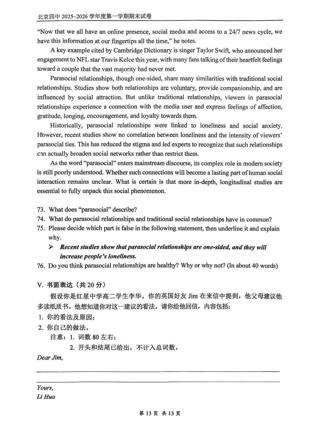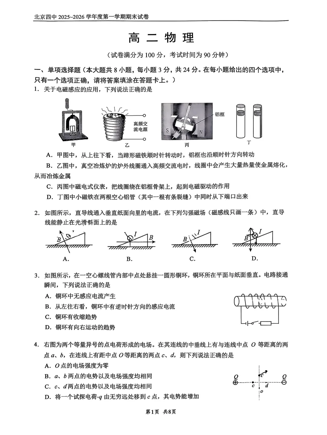2026年北京四中高二期末考试试题及答案PDF版,持续更新中,扫码进【北京高二交流群】下载↓