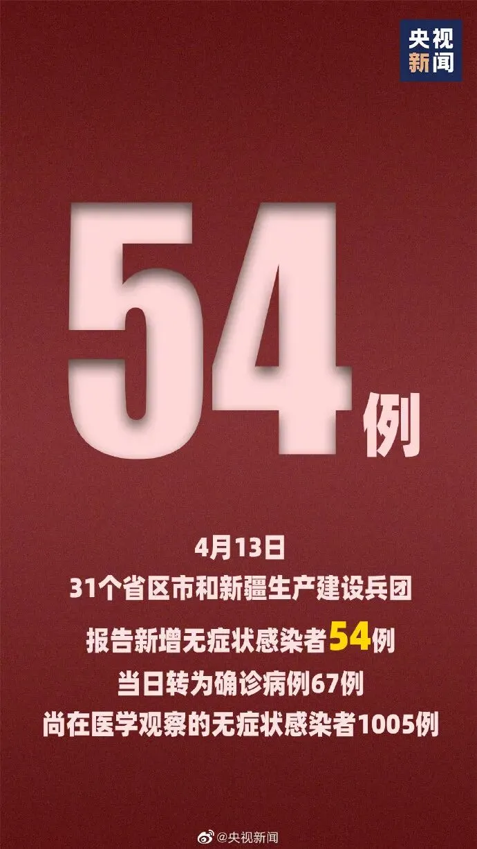 4月13日0—24时,重庆市报告新增无症状感染者1例(外地输入)。