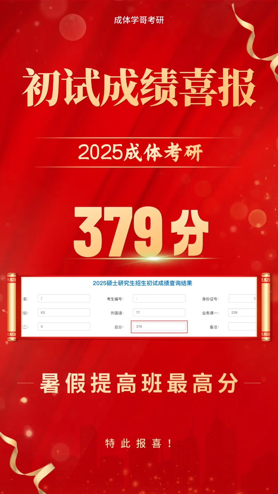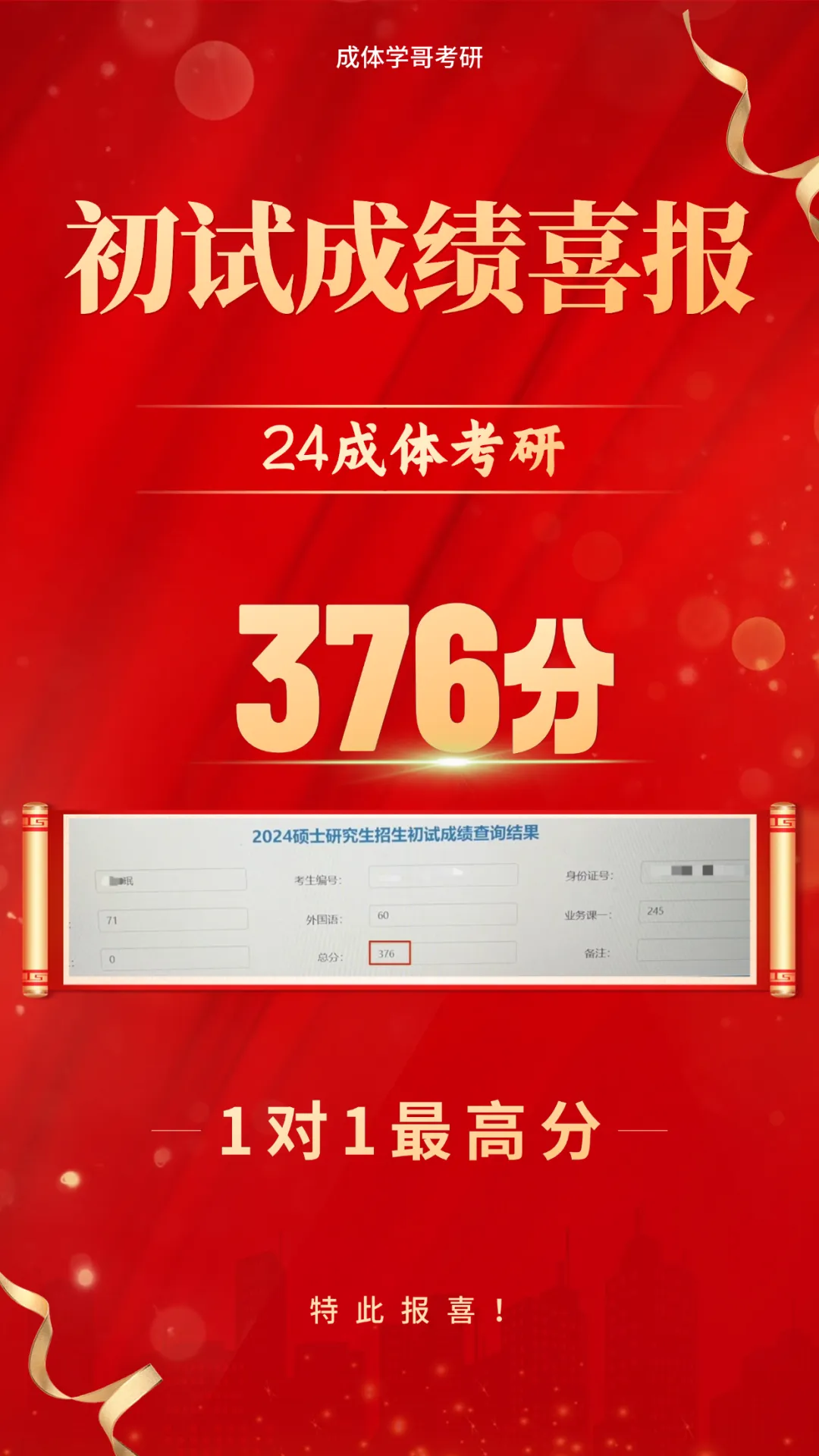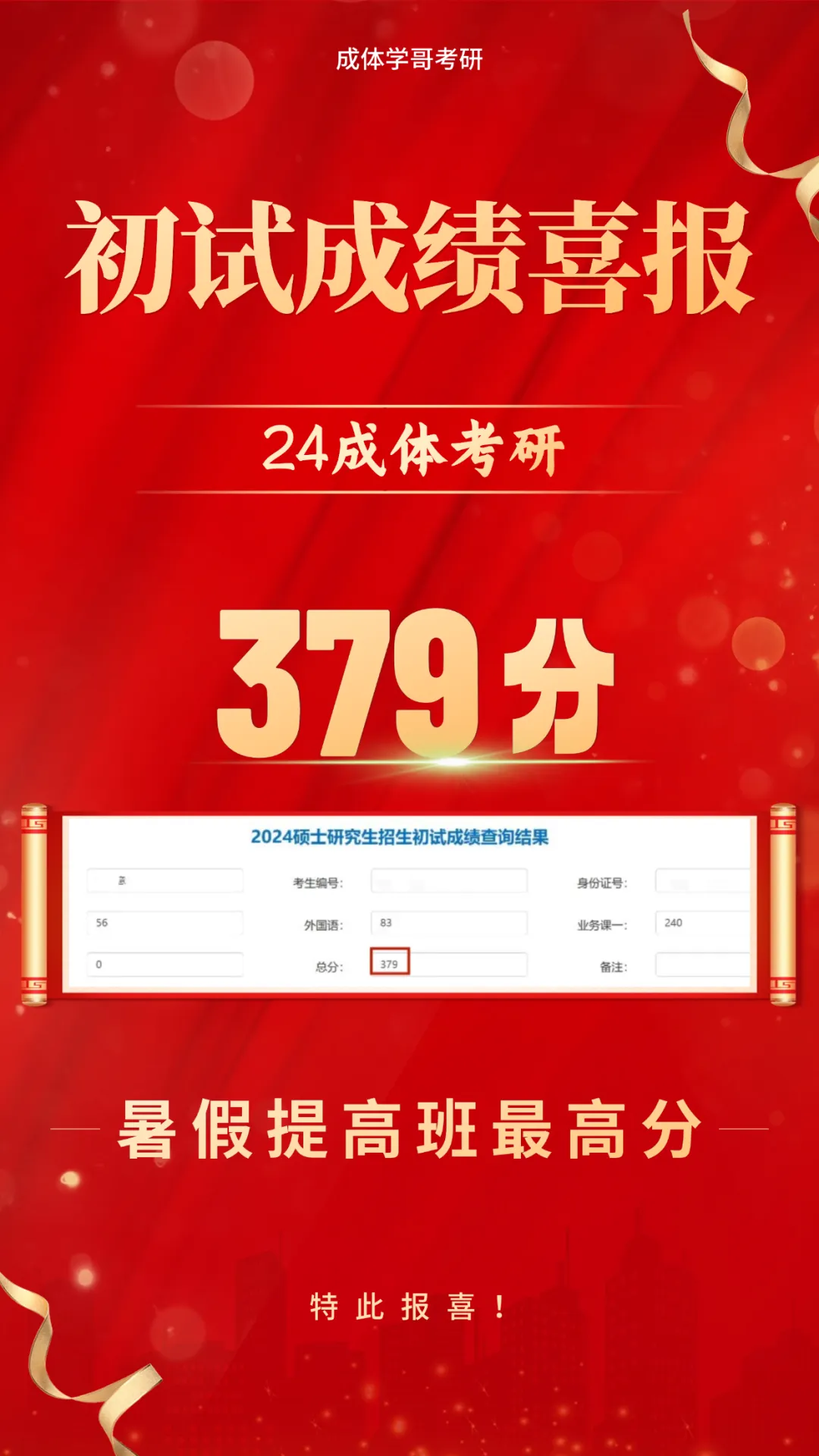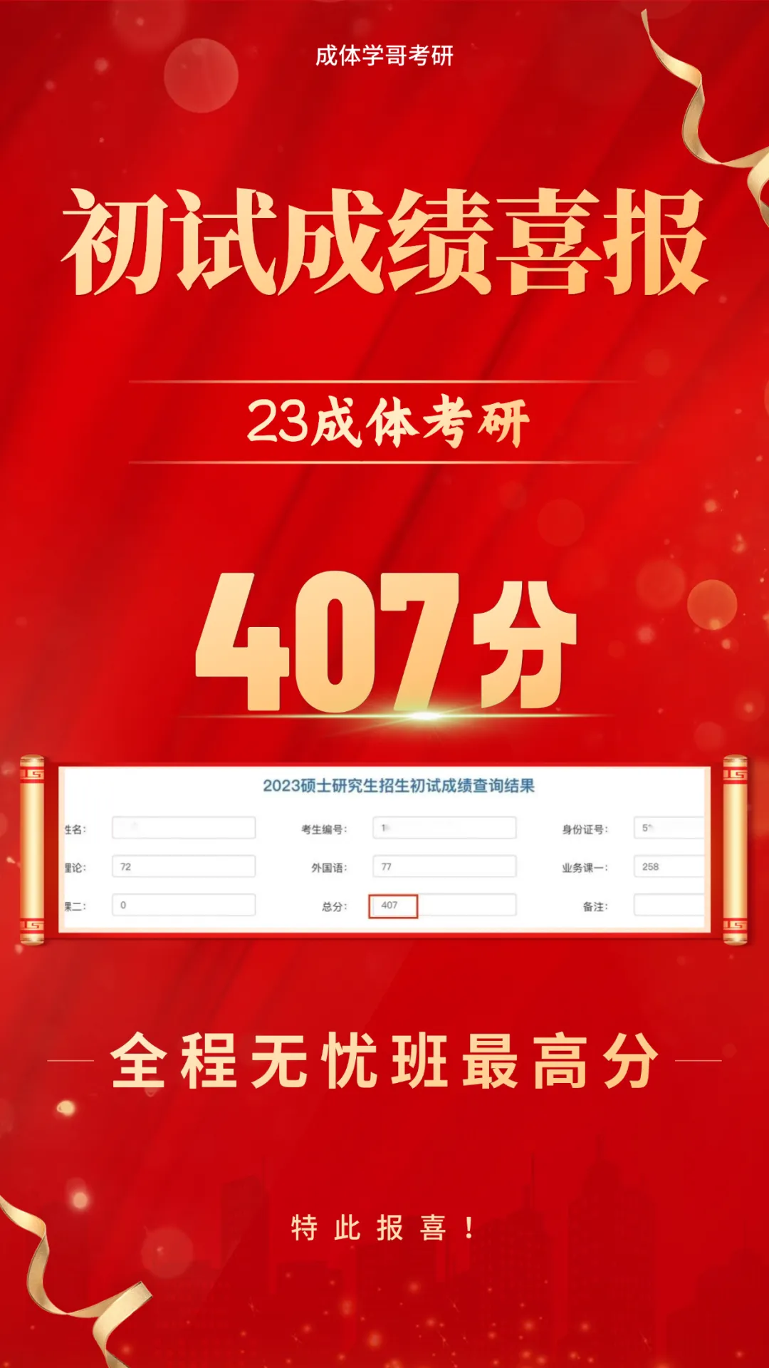 2、根据成体学哥团队的内部统计,全程班学员整体录取比例约为60%,譬如2025年最高分397分,2024年最高分407分,2023年最高分407分,2022年最高分408分,2021年最高分398分,最低分283分都为成体学哥团队全程班学员,同样的课程分数差距之大,同时近几年成都体育学院考研试题更为灵活多变,因此考研上岸是有多种影响因素的,我们并不能做到百分之百的上岸率;