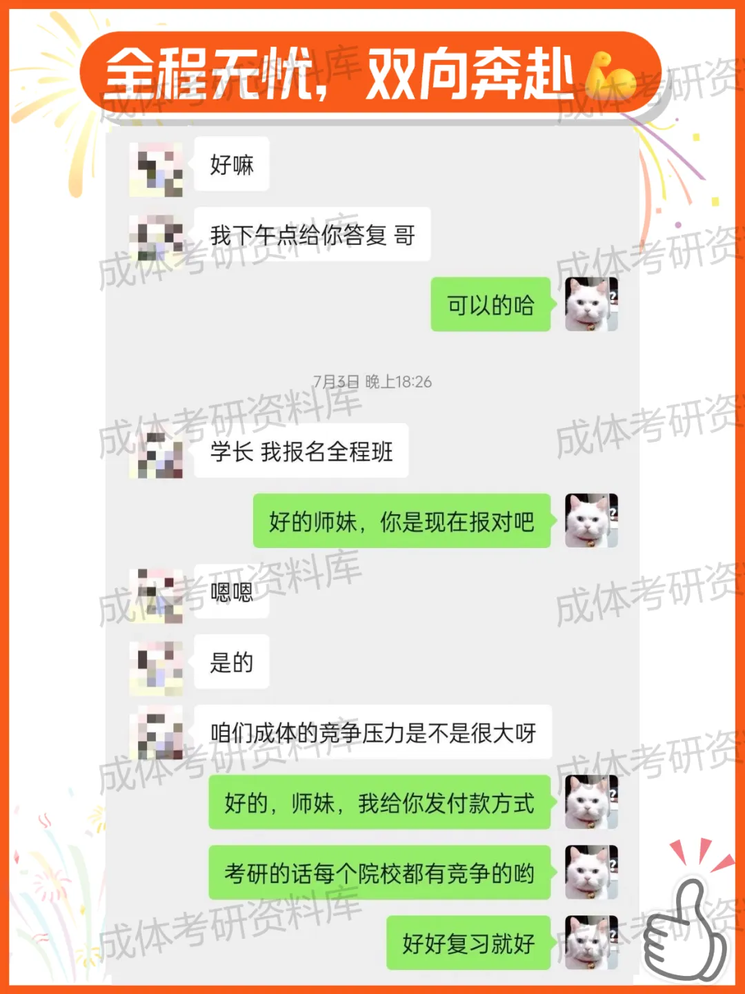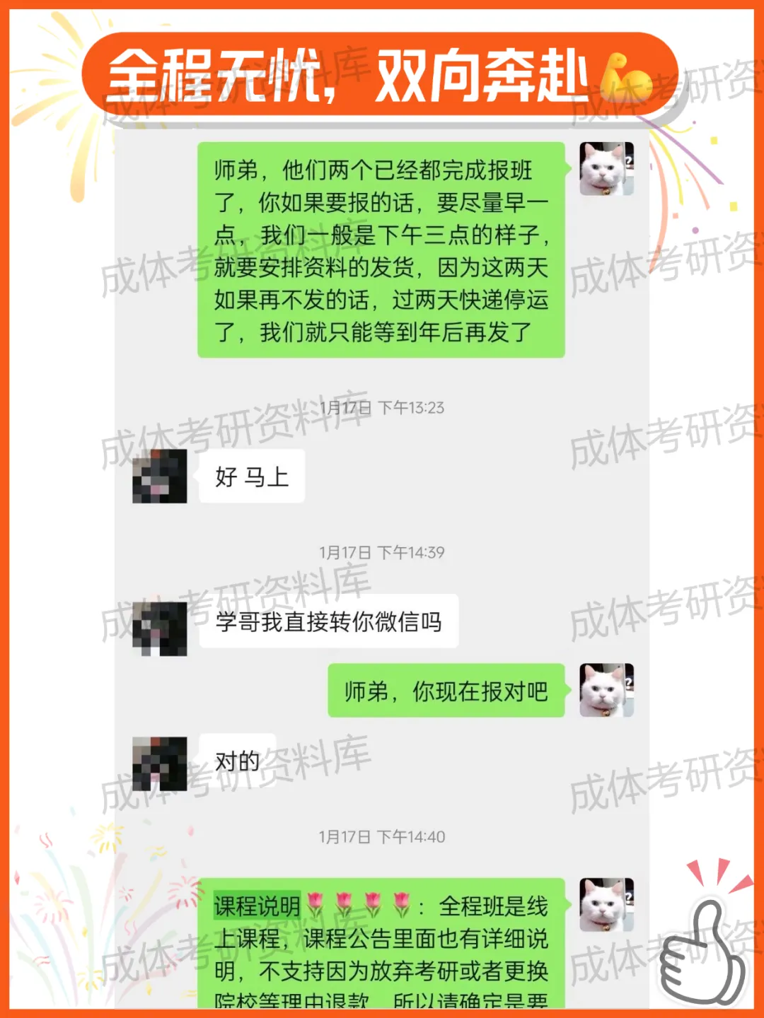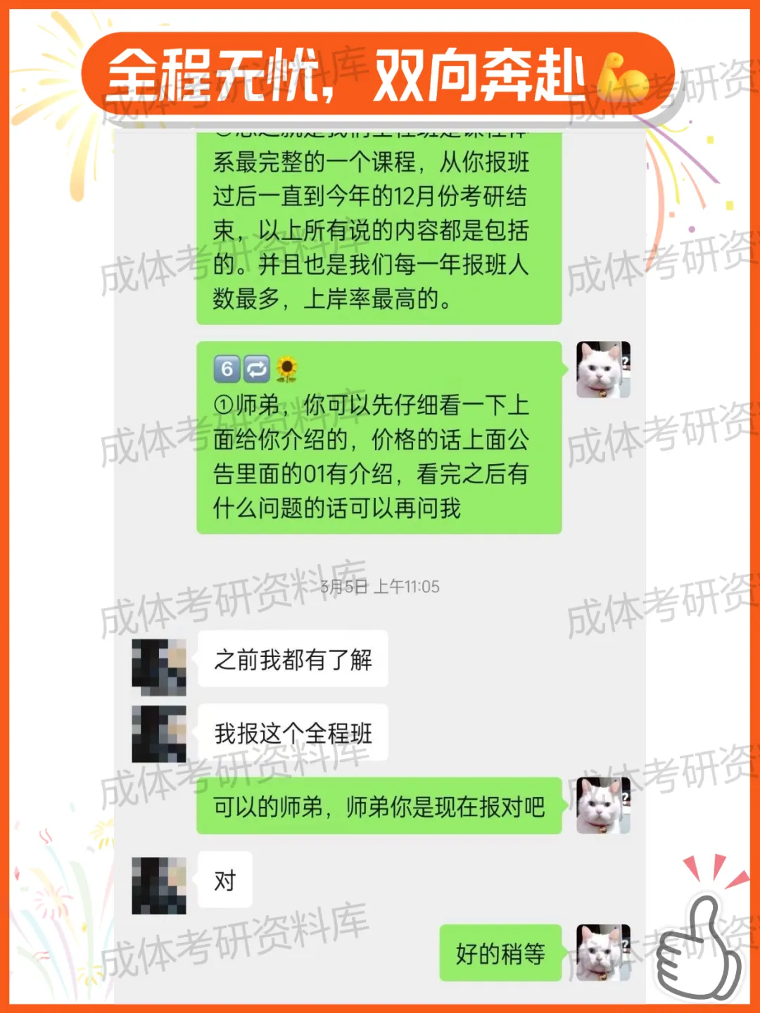 我们能给出的承诺是,我们会倾尽专业与专注,为每一个信任我们的学员提供助力,助他们顺利通过考研。与针对全国广泛范围内所有院校的“大锅饭”服务模式不同,我们选择在特定院校进行深度耕耘,至今已积累了9年的丰富经验。这不仅源于我们对这份事业的热爱,更在于我们不断总结经验,使服务更为系统和专业。特别是从校园生活的点滴到学校的考研政策,从课程内容到毕业流程,无论是备考信息还是读研历程,我们都了如指掌。每一届成体考研学子的复习进度、基础状况、学习方法以及备考过程中遇到的问题,都成为我们宝贵的经验财富。这也是大家一直推荐并认可成体学哥的重要原因。以下是我们今年的亮点、升级:
