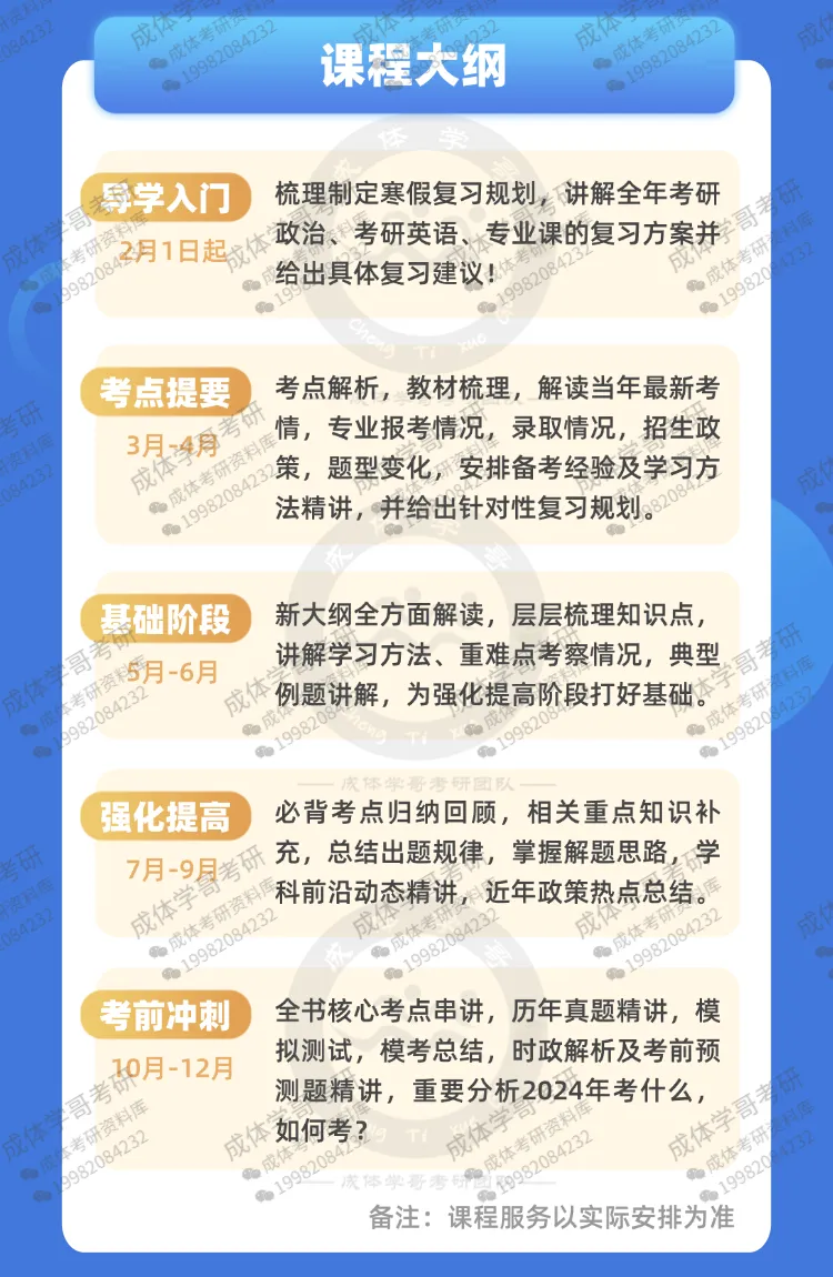 2024年成体考研全程无忧班发布,上课时间及课程教学大纲全部调整更新