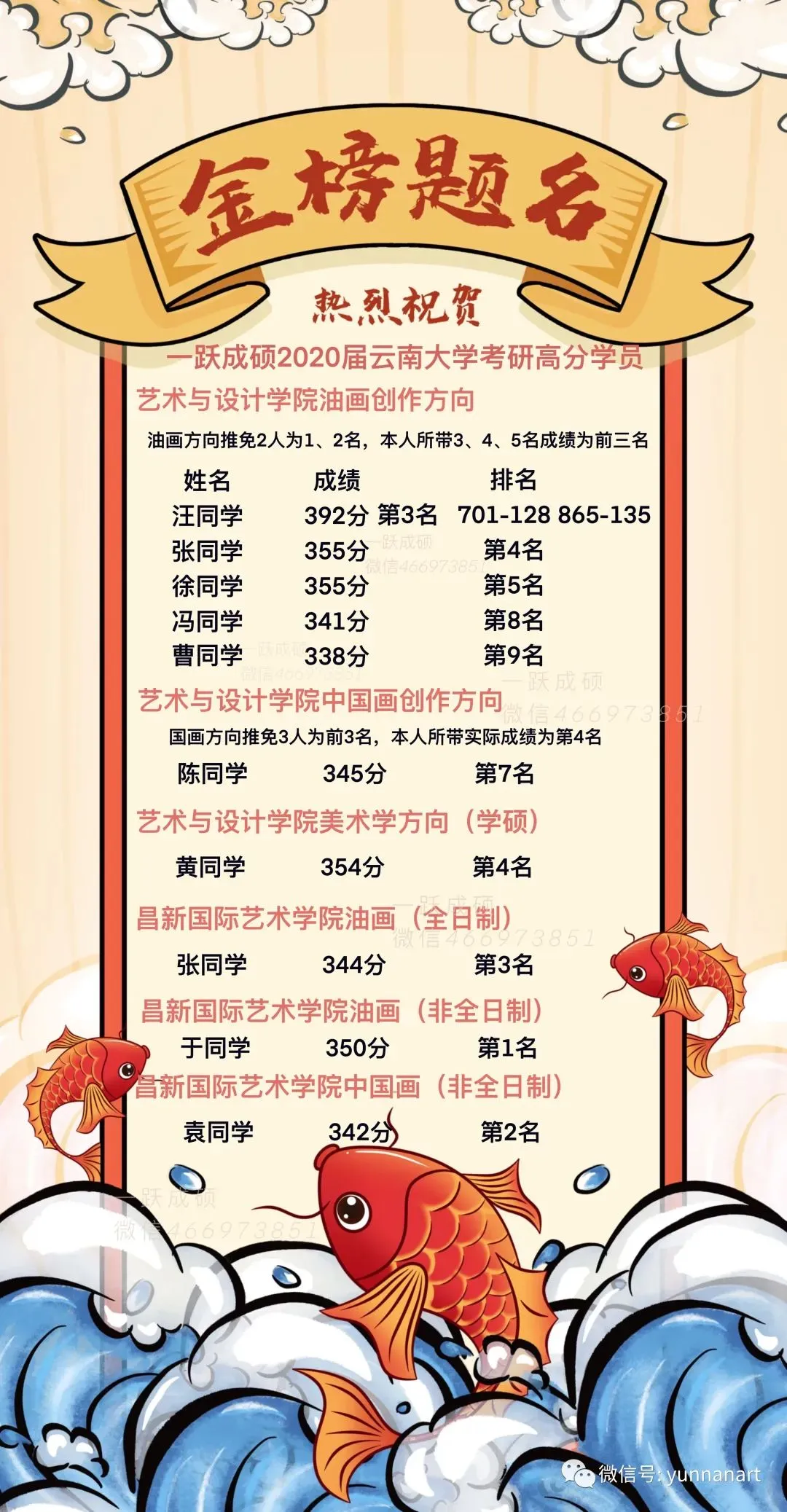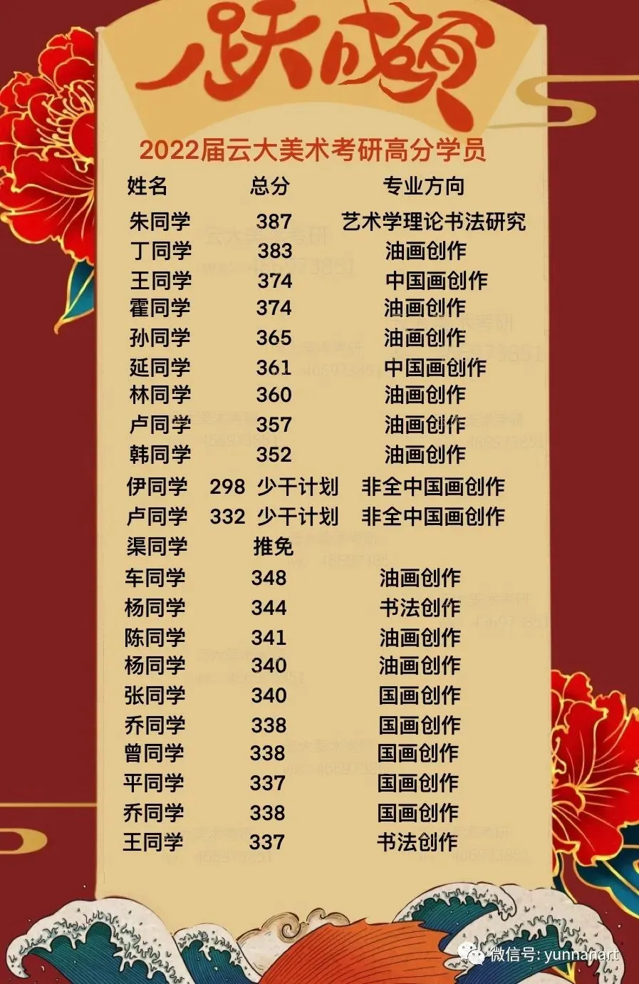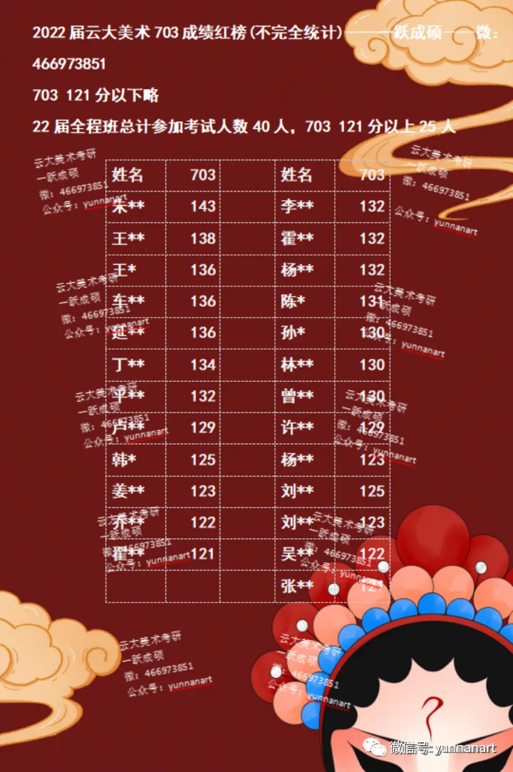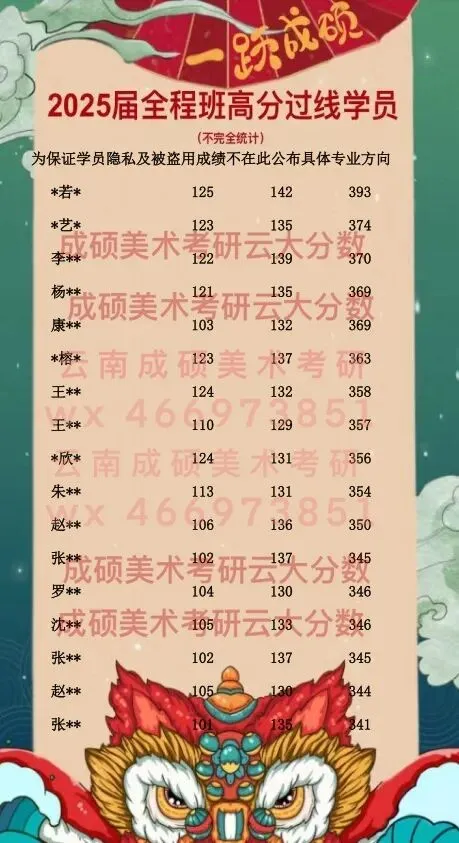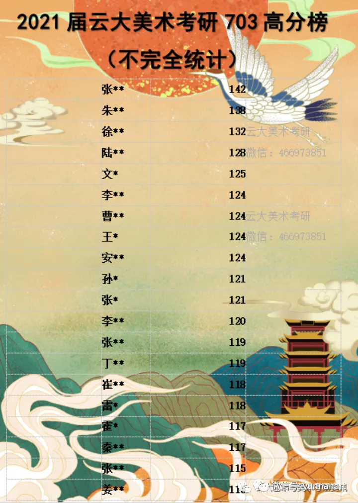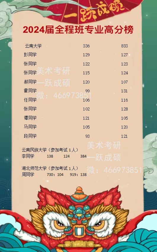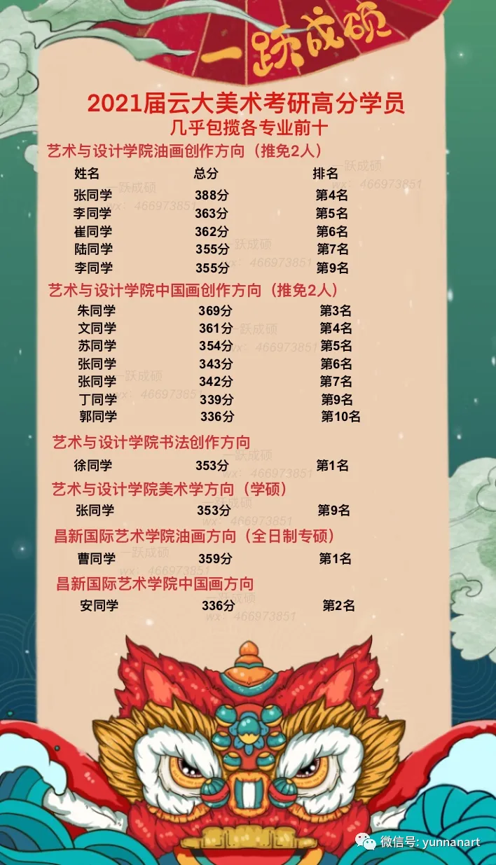 2020——2025年云大艺术类学生考研成绩红榜/昌新国际艺术学院/艺术与设计学院833丨336