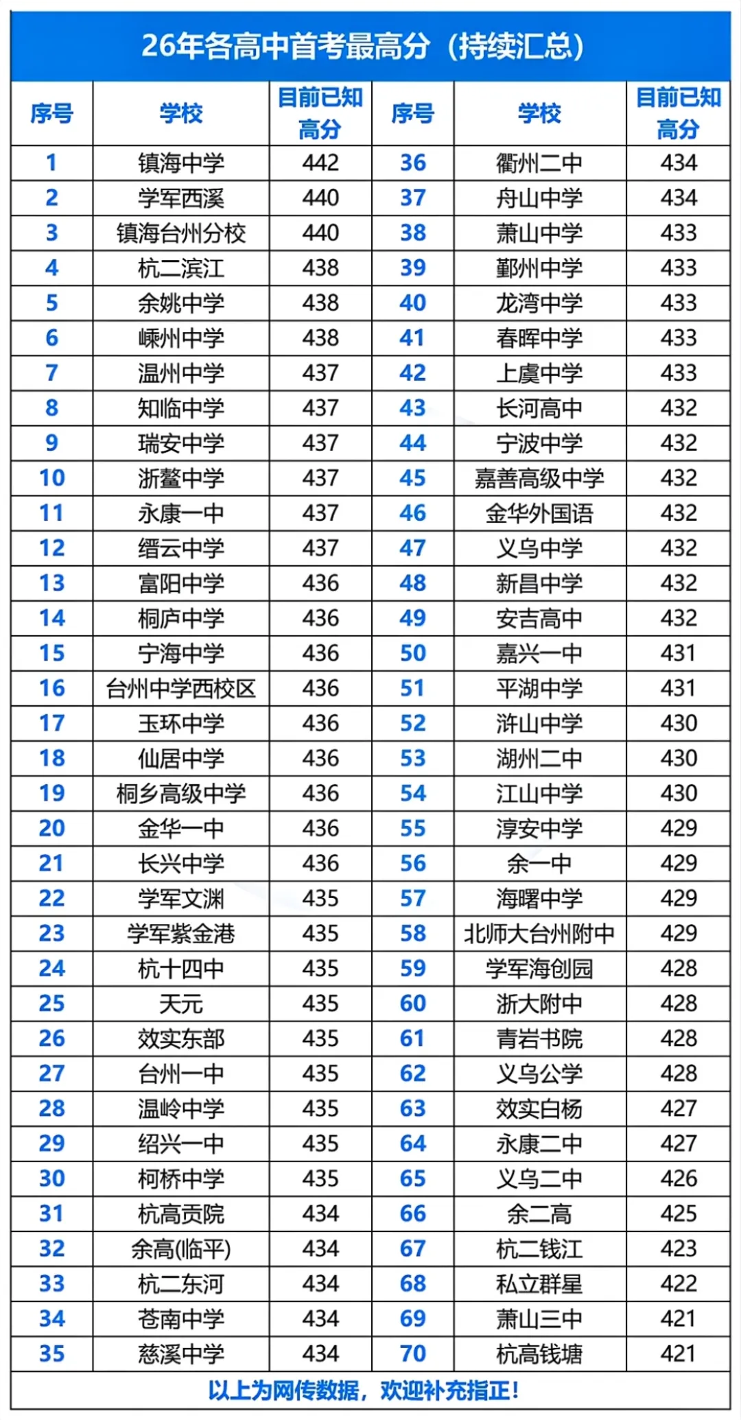 (5)要考得浙江省第1名,2026年首考成绩要达到440+分。即三门选考大致是满分,英语高考成绩是140+分。(比如今年镇海442学员各科成绩:英语144,物理99,化学100,技术99)