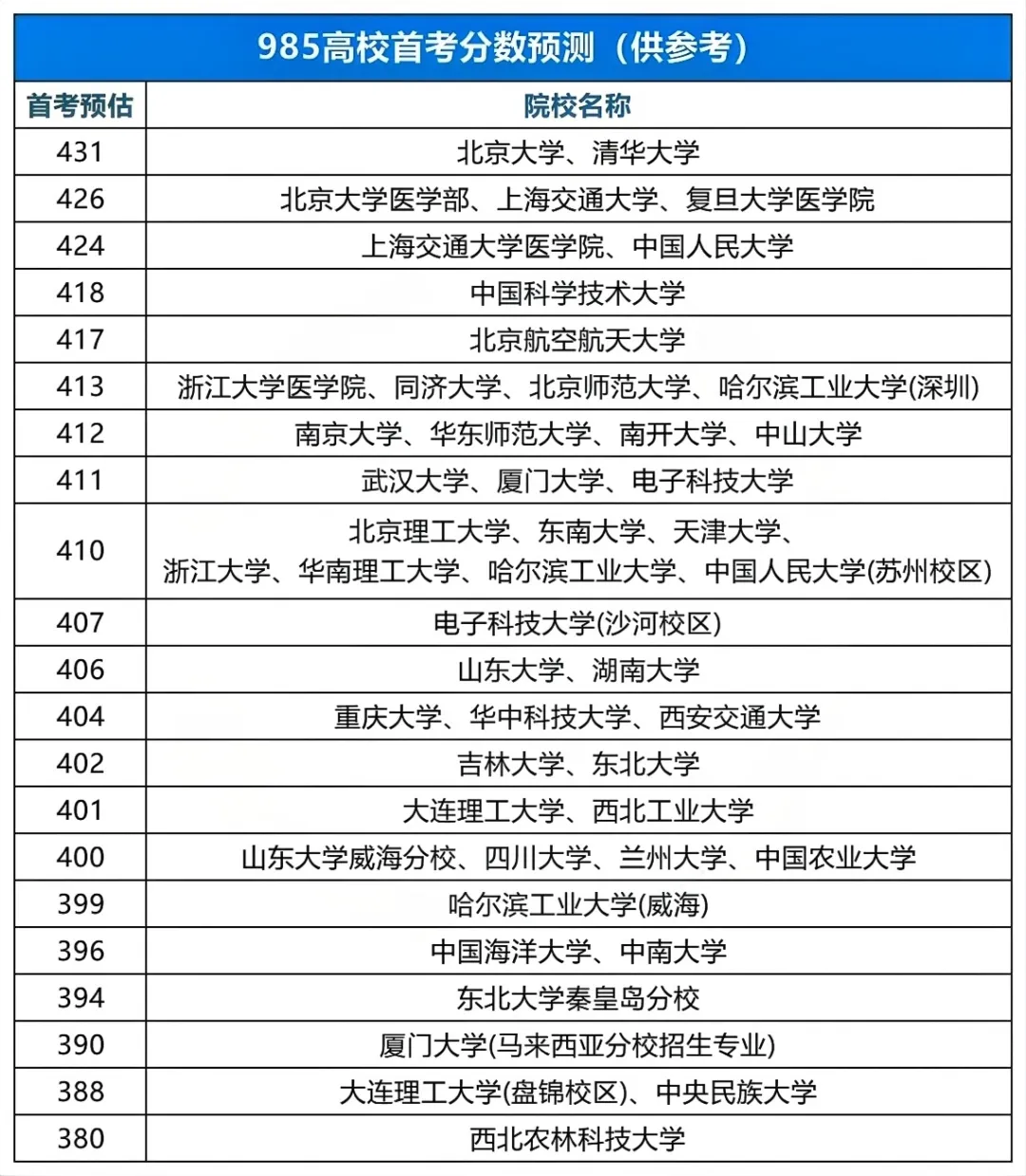 (7)要通过高考裸分录取到985大学(录取分数线最低的985大学),这要求2026年首考的成绩大约要达到380分(含偏远地区的985高校)。