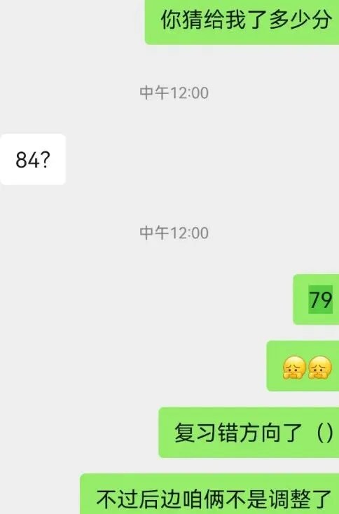 然后如我所料,只有79哈哈哈哈。还是第一科,天塌了,不过后边在朋友的帮助下调整了一下。