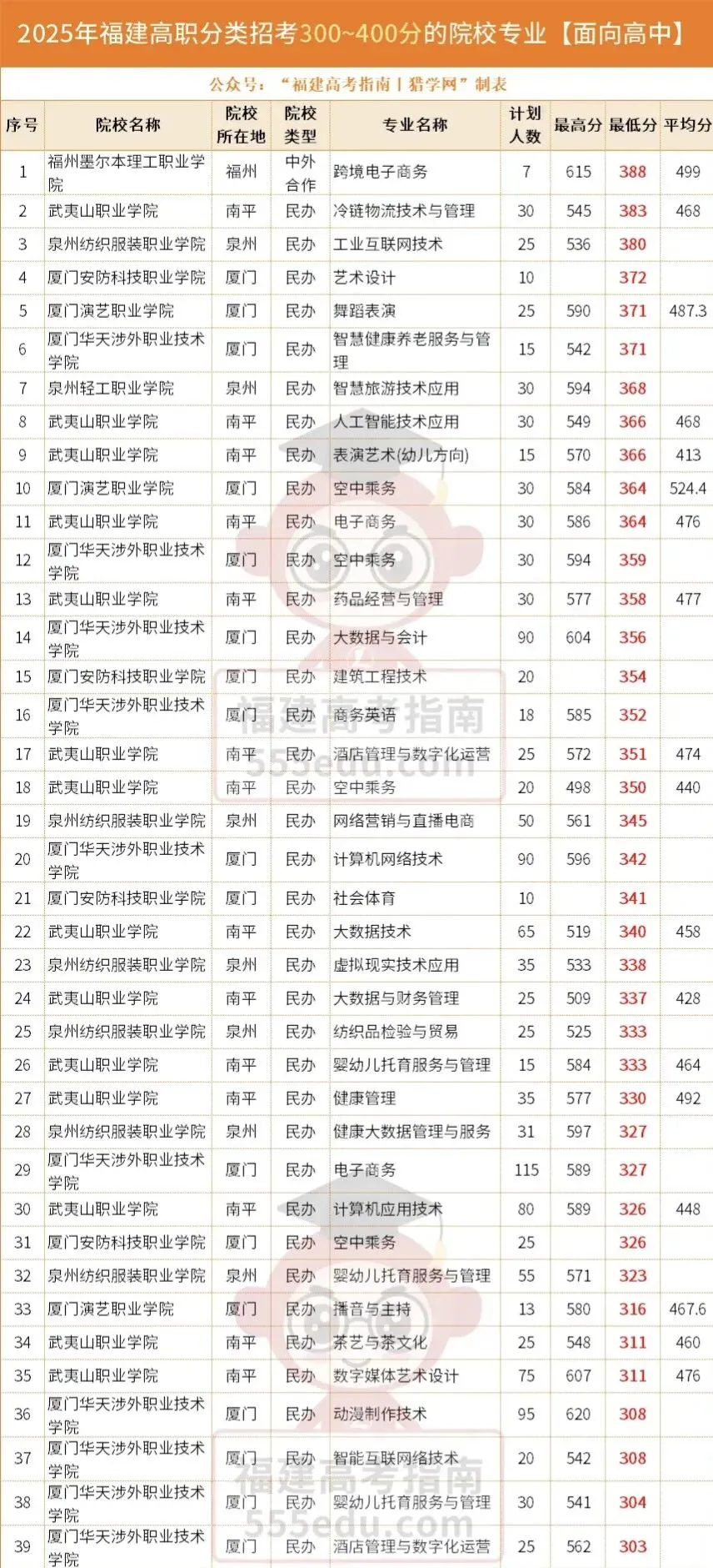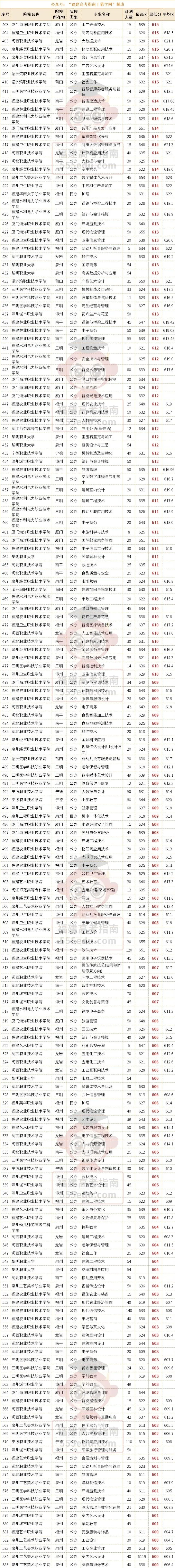 依据近些年福建省高职分类招考(春季高考)历年录取数据,我们为各位考生整理汇总了相关参考资讯。