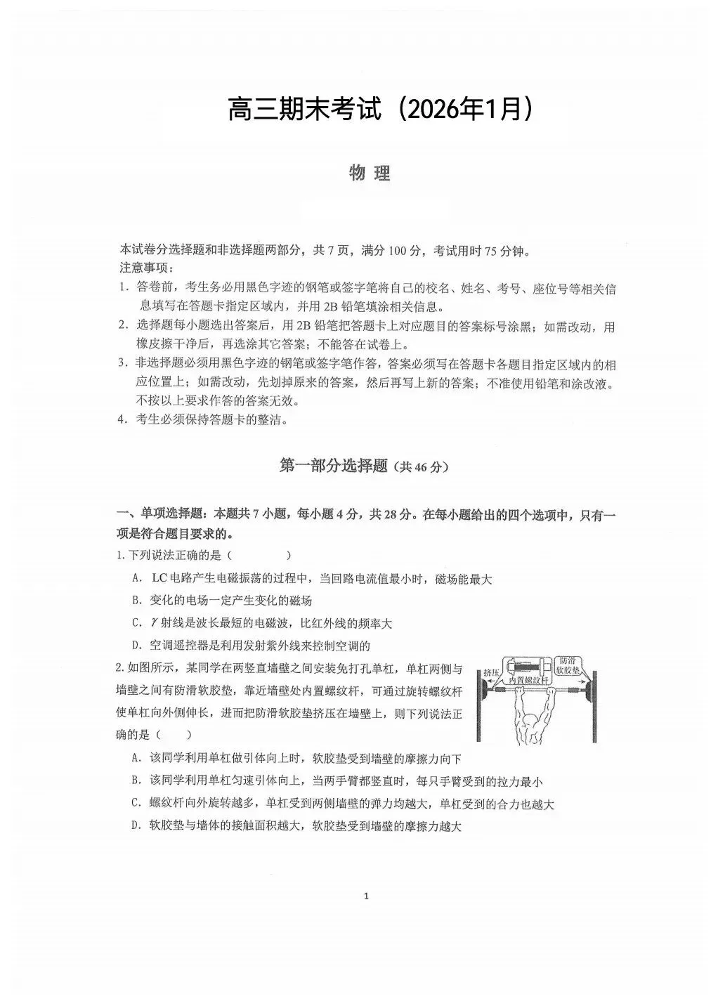 2025年汕头市普通高考第一次模拟考试物理试题及答案(汕头一模)