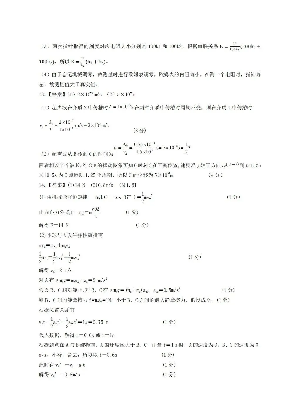 2023届广州市普通高中毕业班综合测试(二)广州二模物理试卷及答案