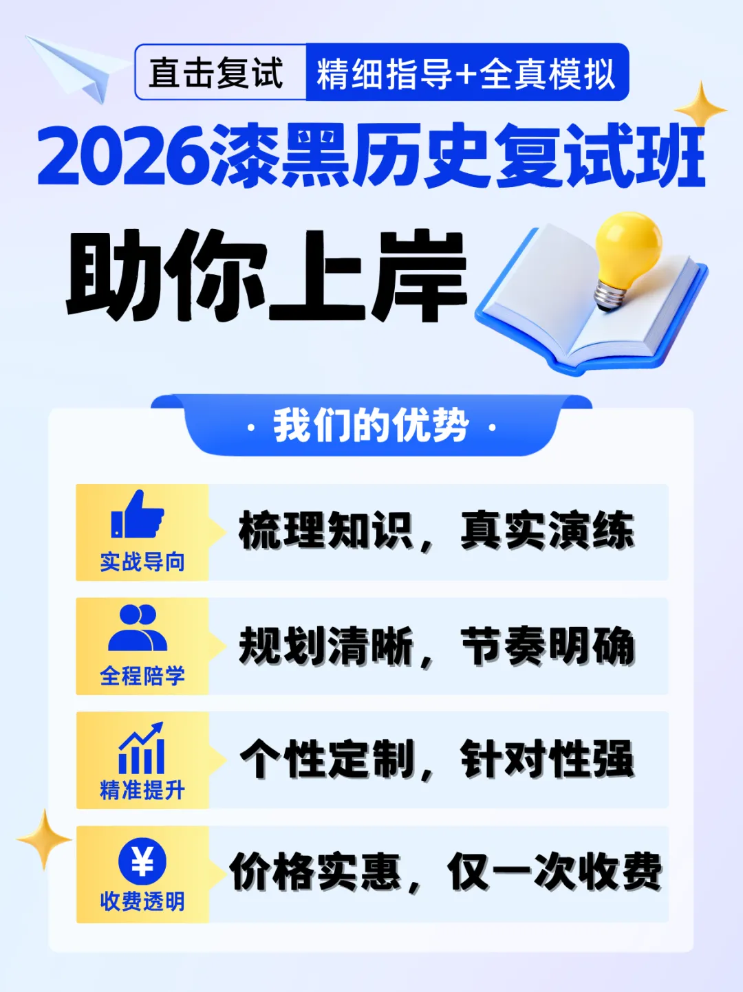 经过数月的精心打磨,2026漆黑千明历史复试班将于2.5日正式开班!
