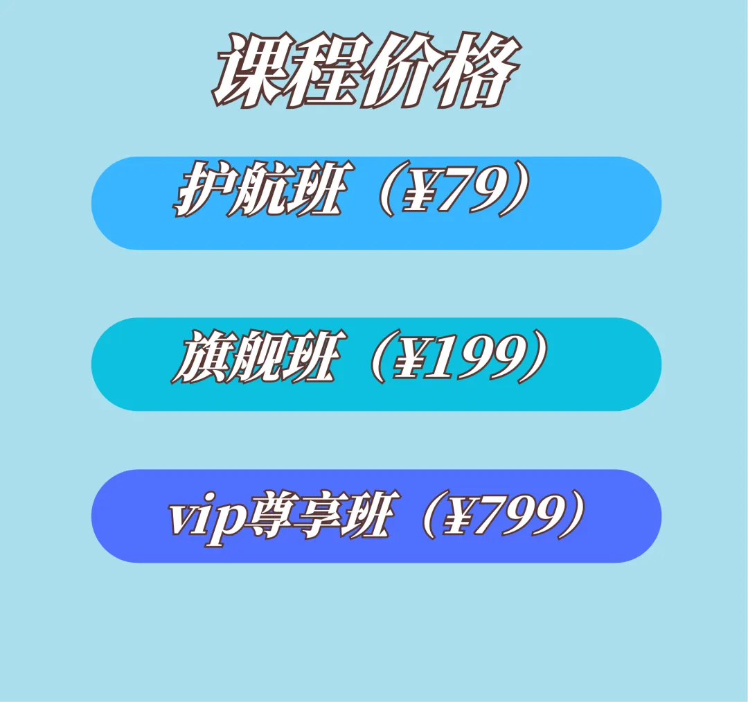 1.课程优惠与价格(出分前早鸟价)为了适应不同基础的同学,本次课程分为三种班型!