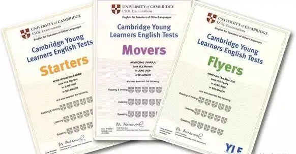剑桥少儿英语考试证书