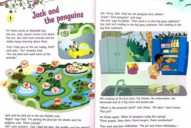 每个单元都是这样编排的:比如,开头是这样的一个图文并茂的故事,引出这个单元的话题,然后围绕这篇文章展开各种听、说、读、写练习 ...