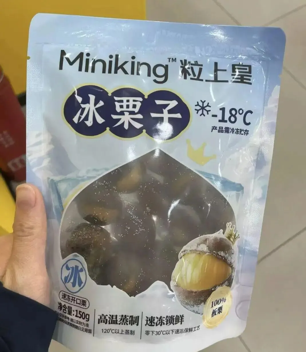 我撕开包装,里面的栗子个个咧开了嘴,棕得发亮。手指随便一捏就剥开了,特别方便。