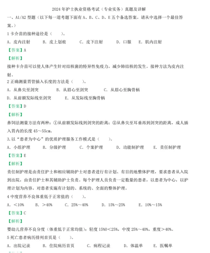 >【护士资格考试】2026备考历年真题及答案pdf电子版