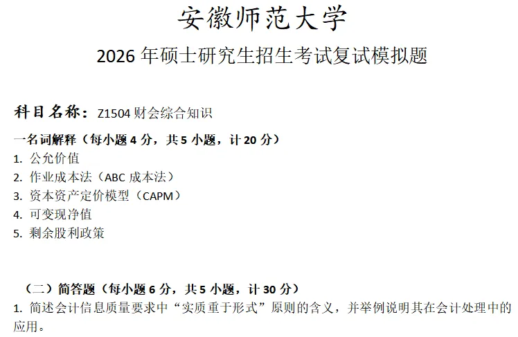 安徽师范大学Z1504财会综合知识考研复试真题模拟