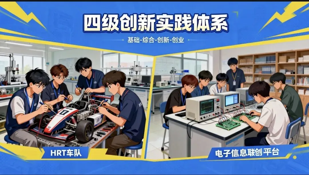 · 跨学科实践:组建了如HRT车队(获全国大学生“小平科技创新团队”称号)、巴哈车队、大学生电子信息联创平台等100多个学生创新团队,来自不同专业的学生在实战中协作。