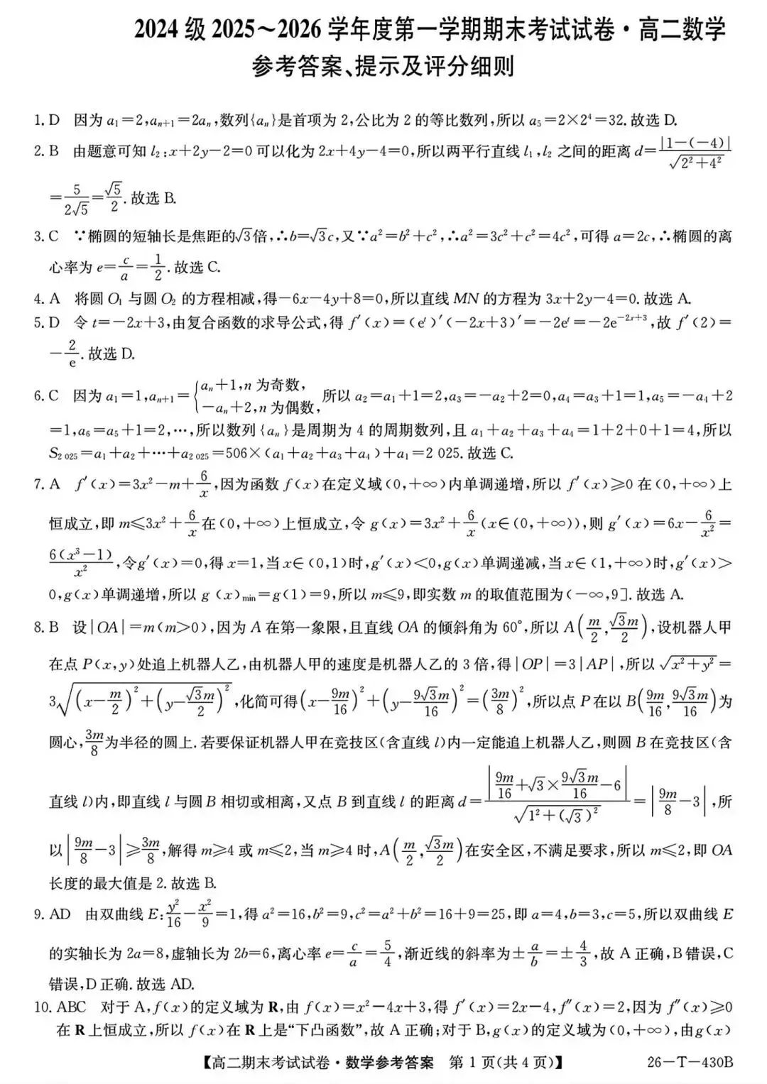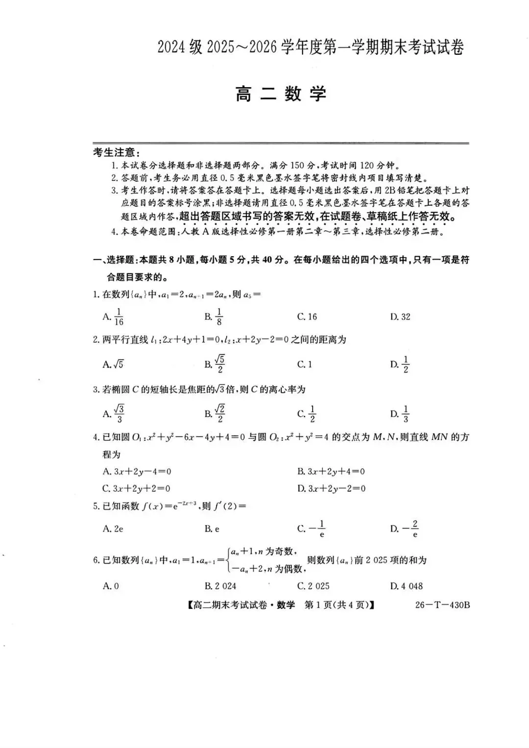 25-26陕西多校高二上期末考试数学试卷