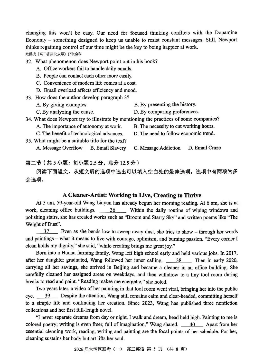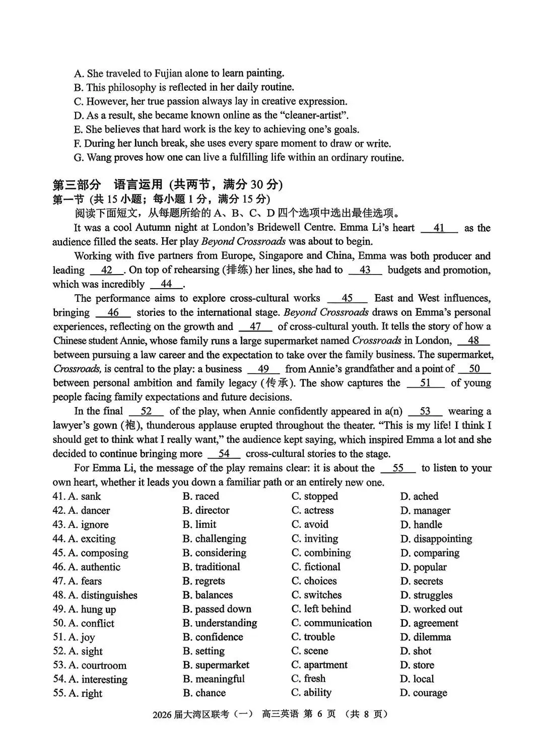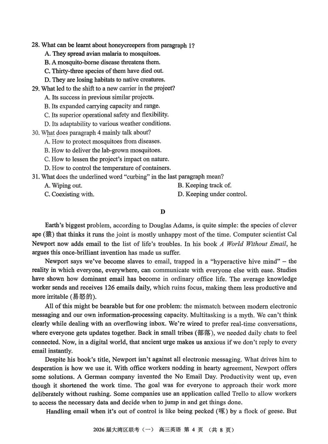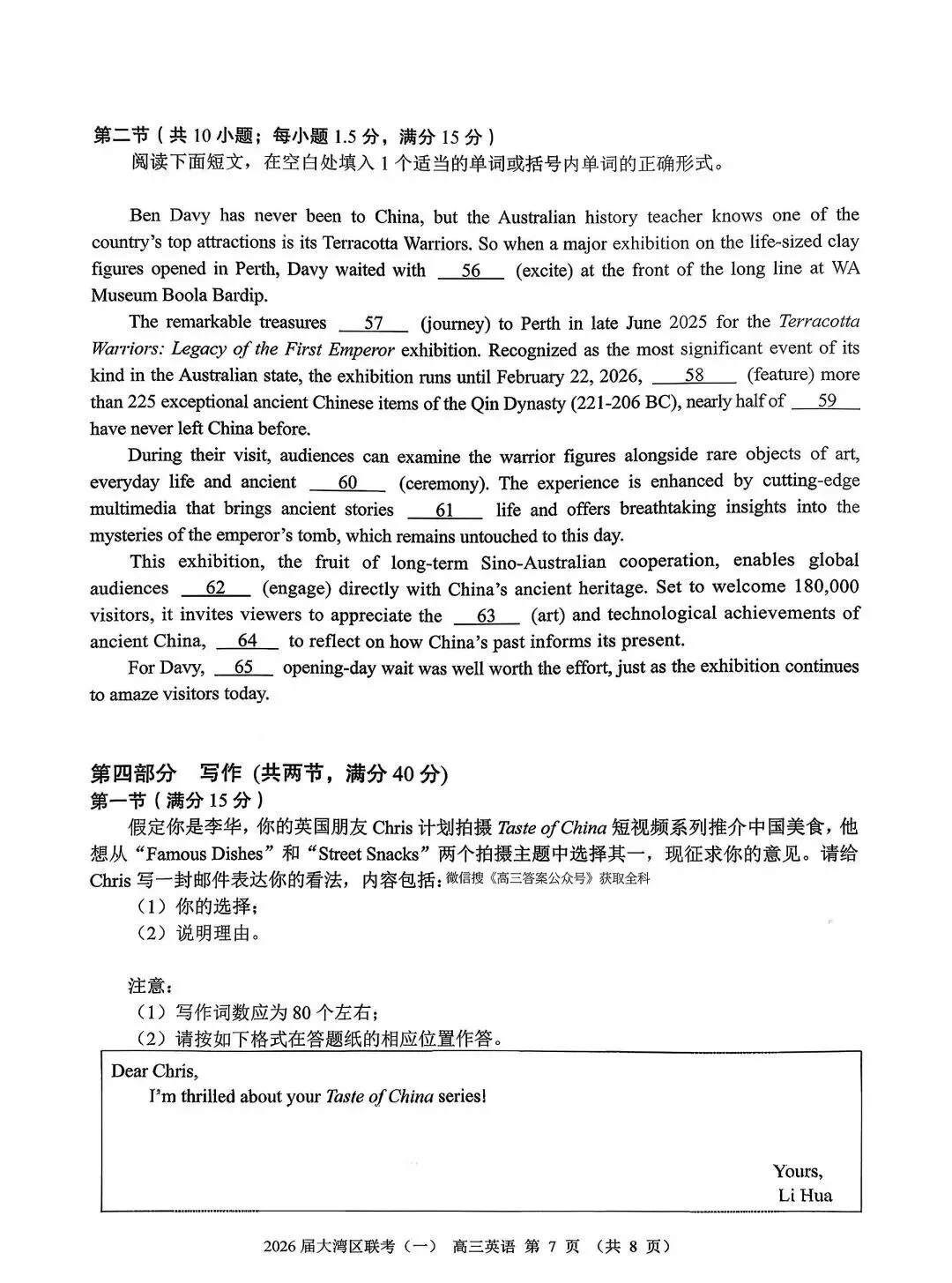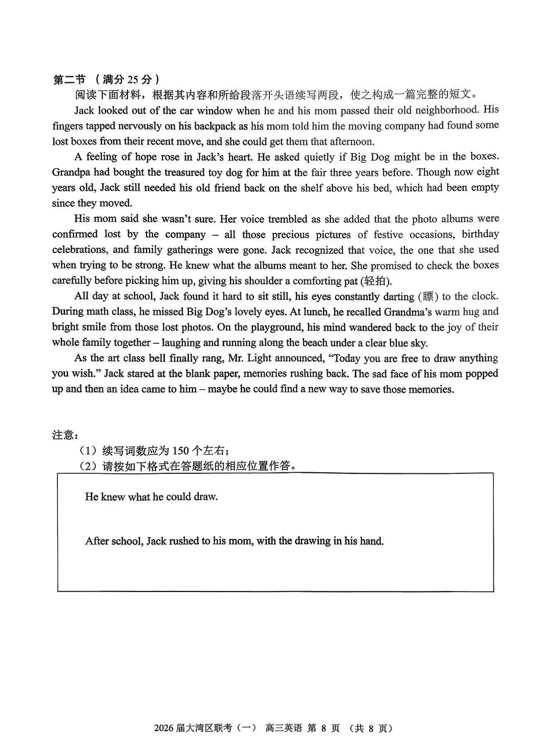 大湾区2026届高三联合模拟考试一英语试题+答案
