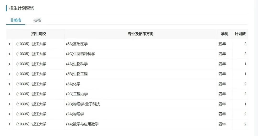 浙江大学强基计划招生专业共13个,理科专业10个,文科专业3个,每位考生限报一个招生组别,组别内最多可填报不超过3个专业。详细专业及选科要求如下:
