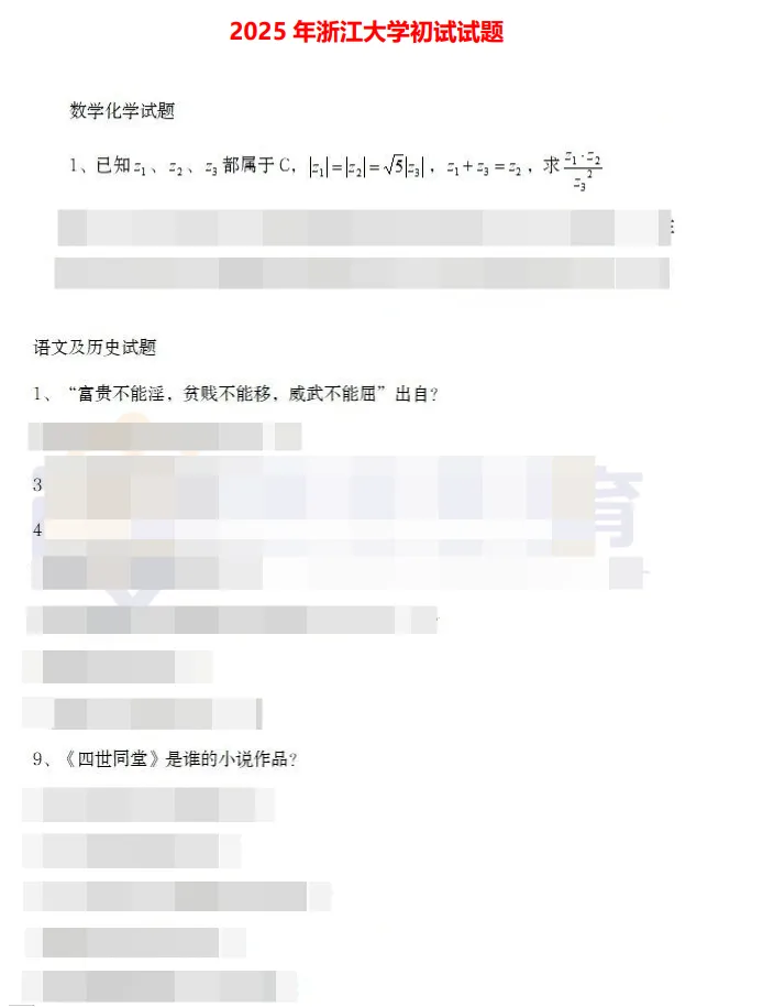 🥑试题分值:数学、物理、化学满分均100分,数学有错误选项不得分;语文和历史共200分。
