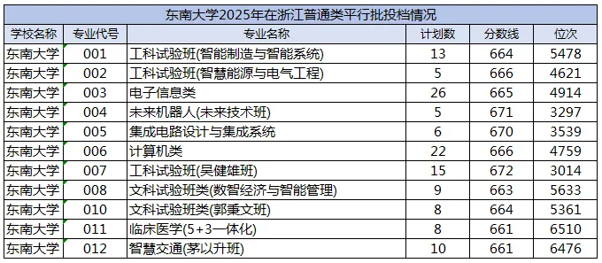 2025年:分数线区间为661-672分,位次进一步收紧至3297-6476名。未来机器人(未来技术班)以671分、3297名成为新的高分专业,而智慧交通(茅以升班)作为新增专业,也以661分、6476名的成绩完成首年招生。