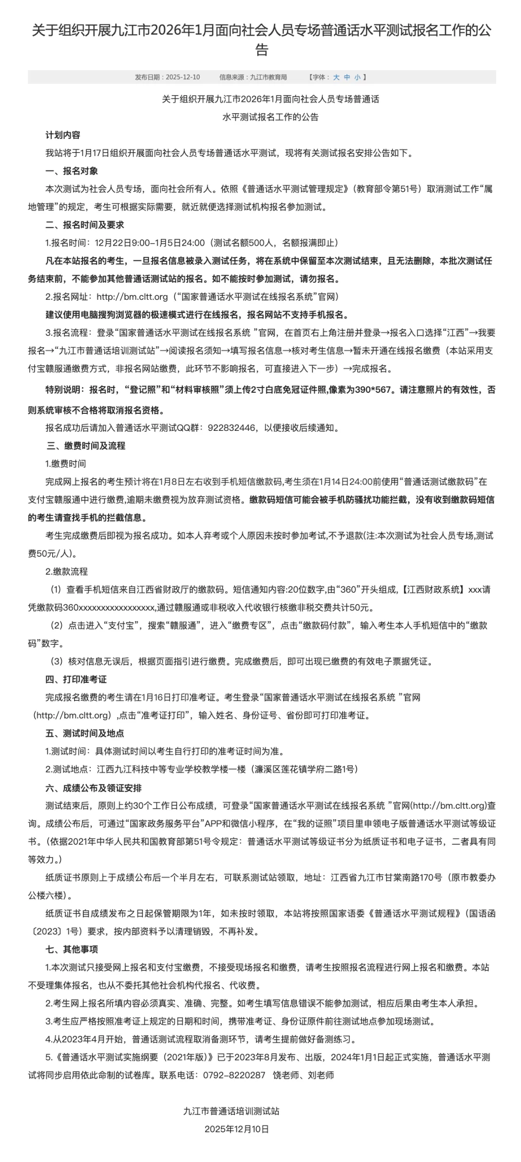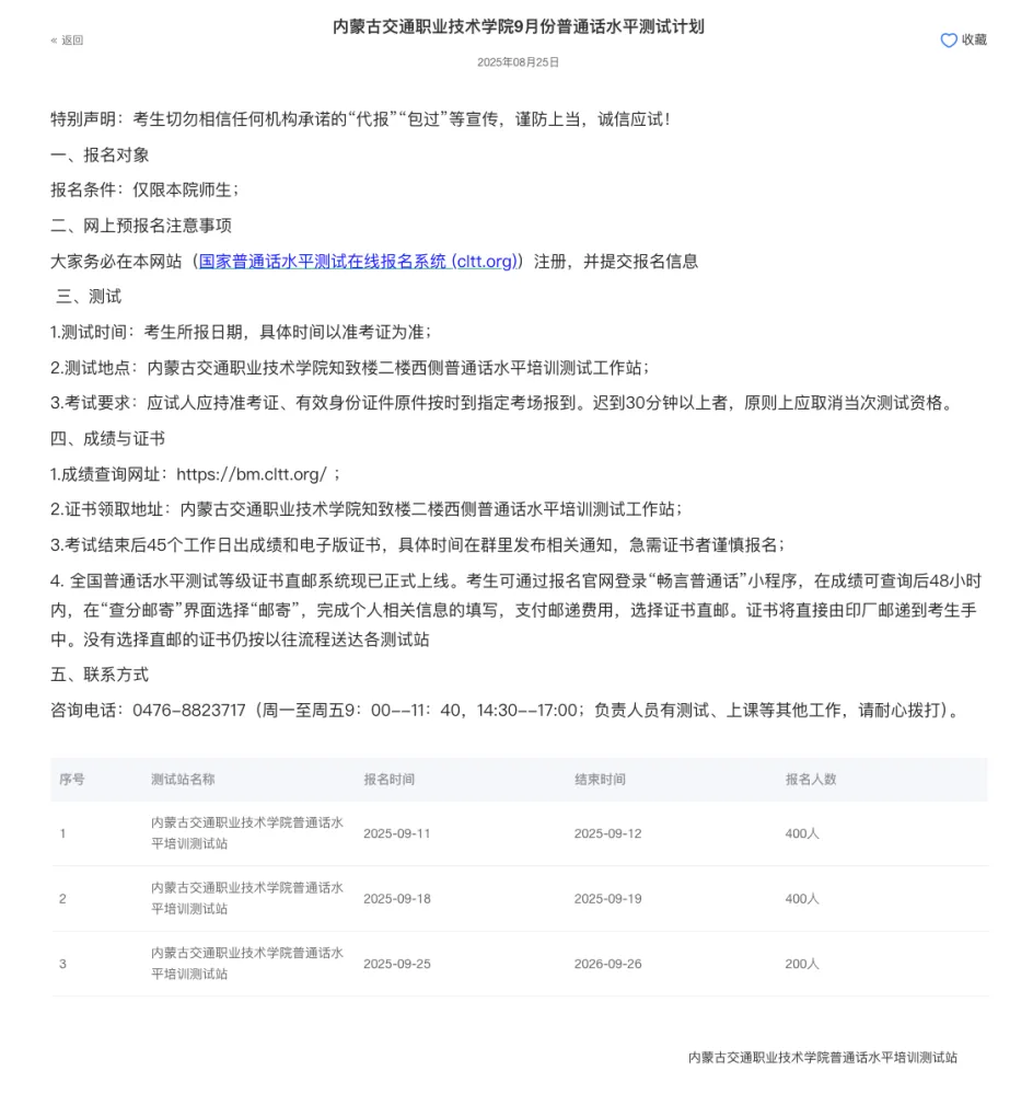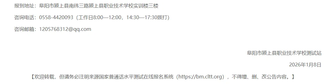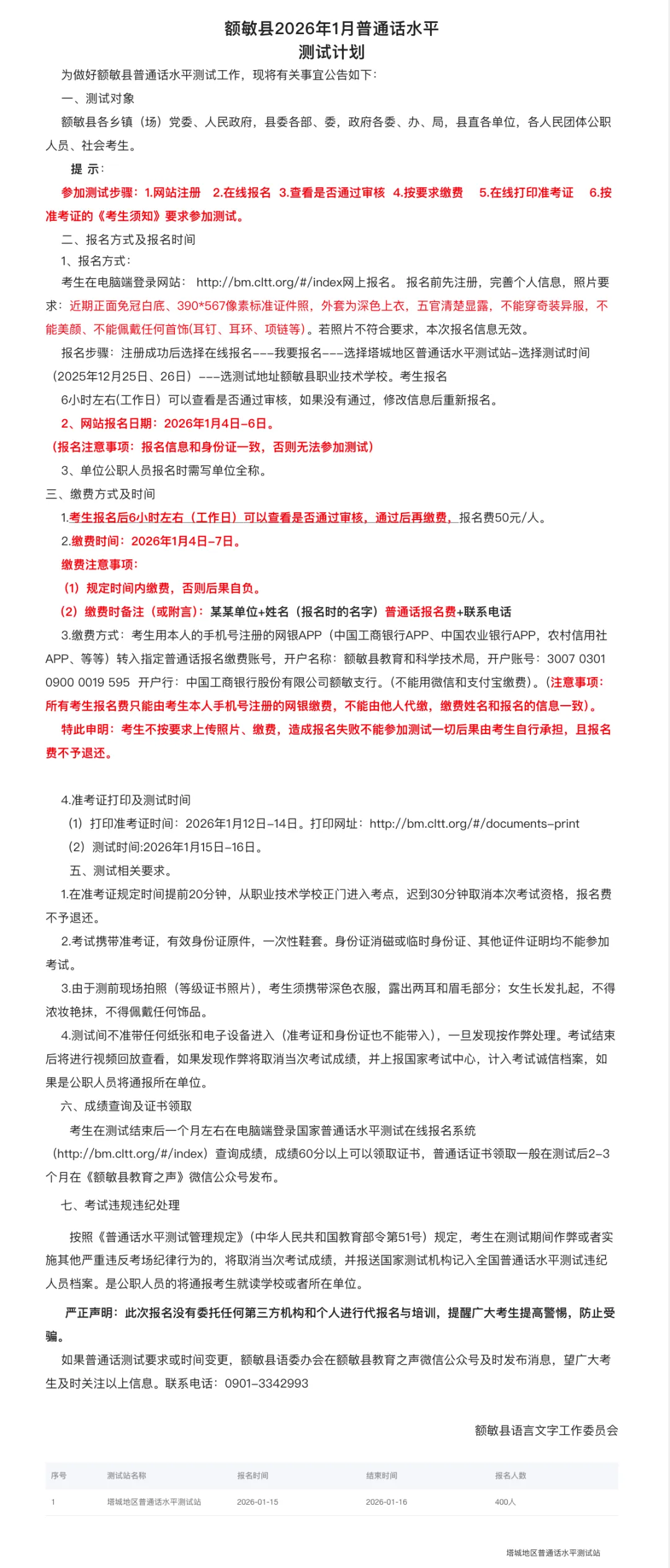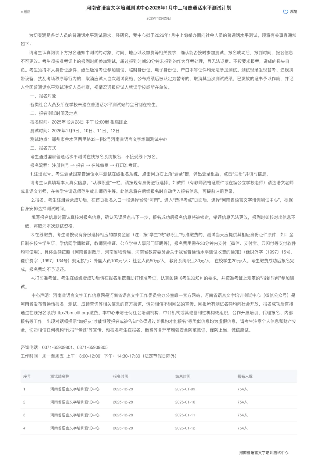 注意事项:普通话考试报名不存在与任何社会机构或个人合作代报,请考生本人按所报测试站的“报名须知”自行报名、缴费,不要委托机构或他人代理报名缴费。