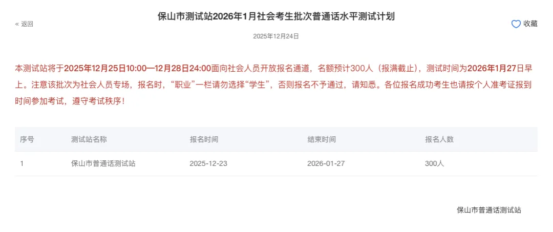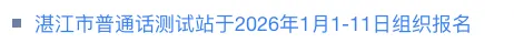 2.若通过国家普通话水平测试在线报名系统 报名,但无法查询到信息 可能是信息被测试站删除,以下情况可能导致信息删除: - 不符合报名要求(如高校测试站通常不接受校外考生报名)。 - 未按时缴费,导致报名资格过期。说明:仅测试站和考生本人有权删除报名信息。