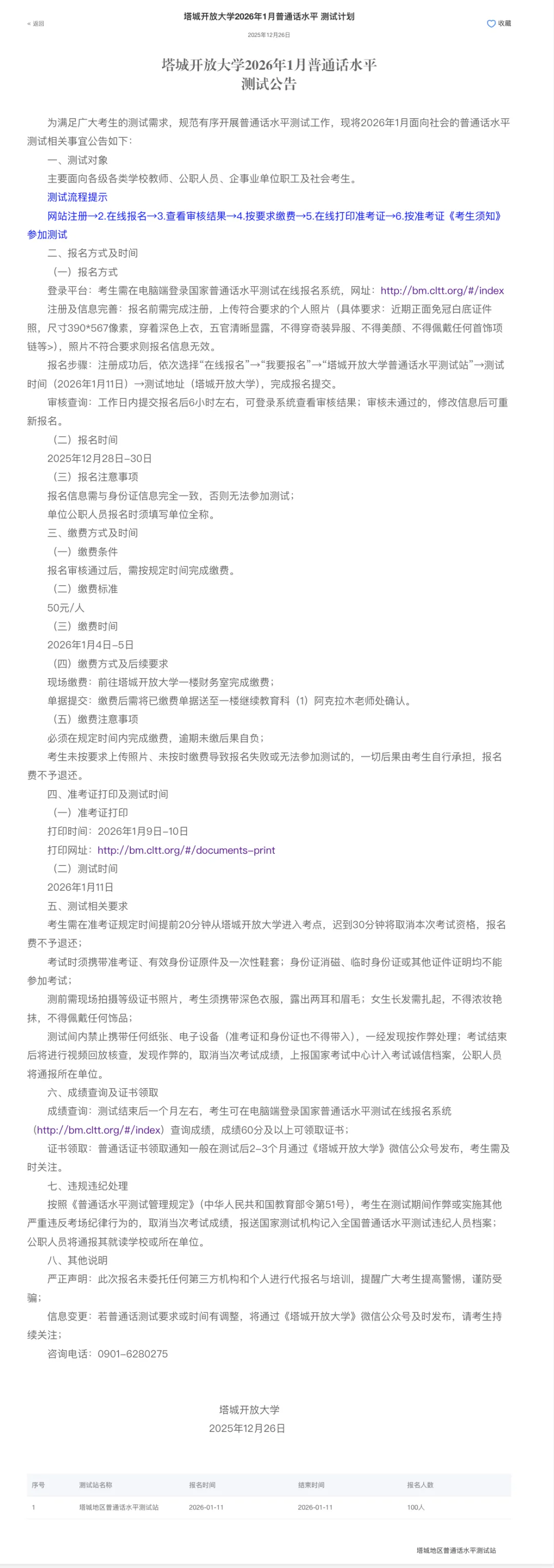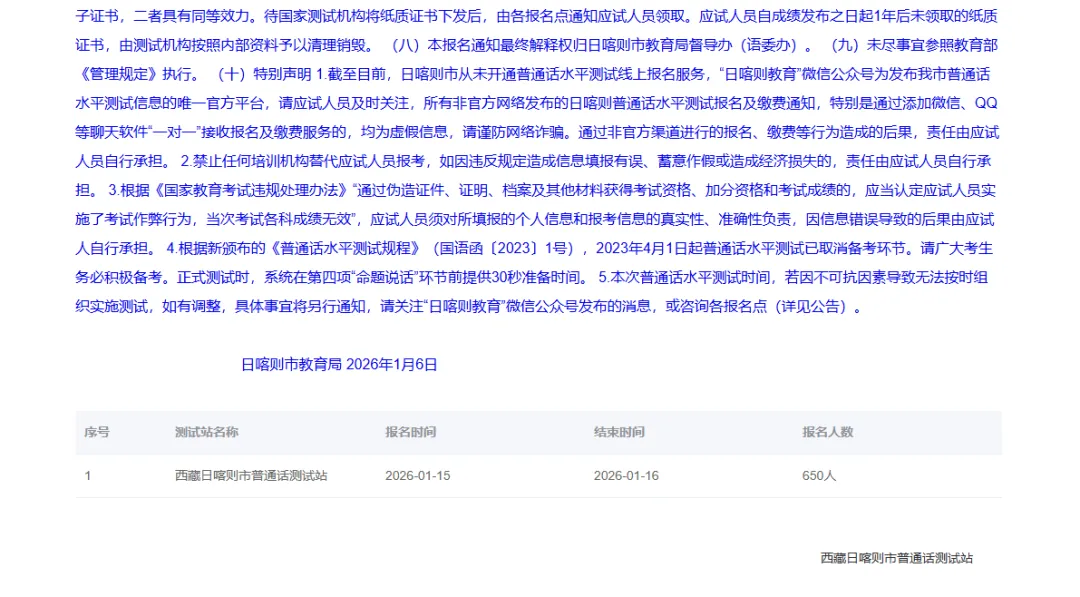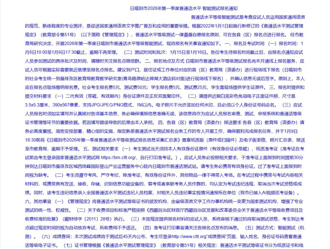 日喀则市2026年第一季度普通话水平智能测试工作的通知