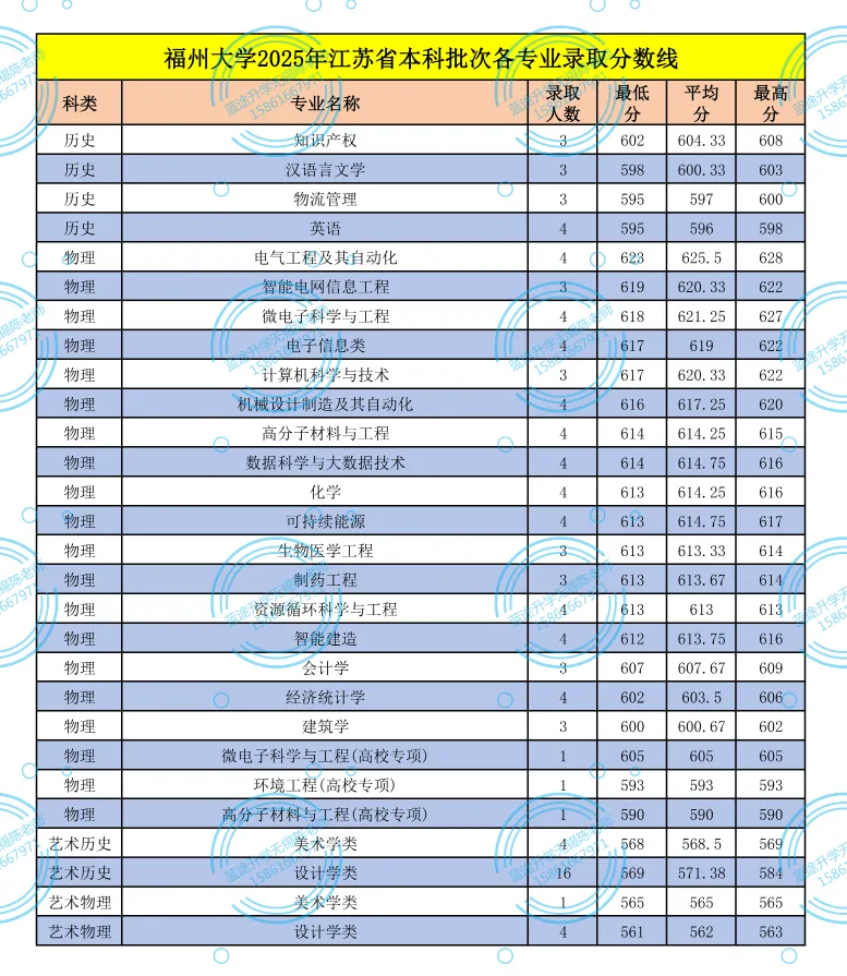 >福州大学2025年江苏省本科批次各专业录取分数线