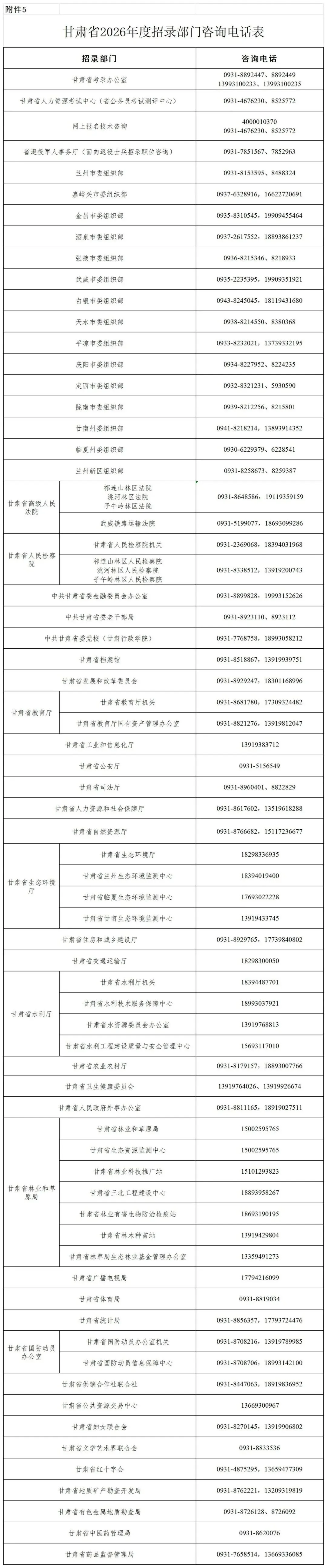 >2026年甘肃省公务员考试招录部门咨询电话!