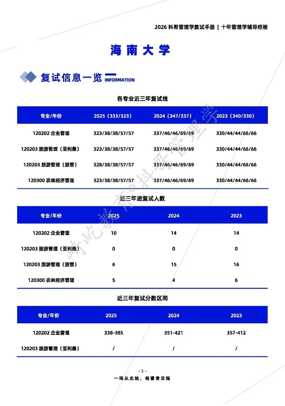 【26复试】海南大学850管理学原理考研|复试数据信息|复试科目信息|经验合集|复试课程
