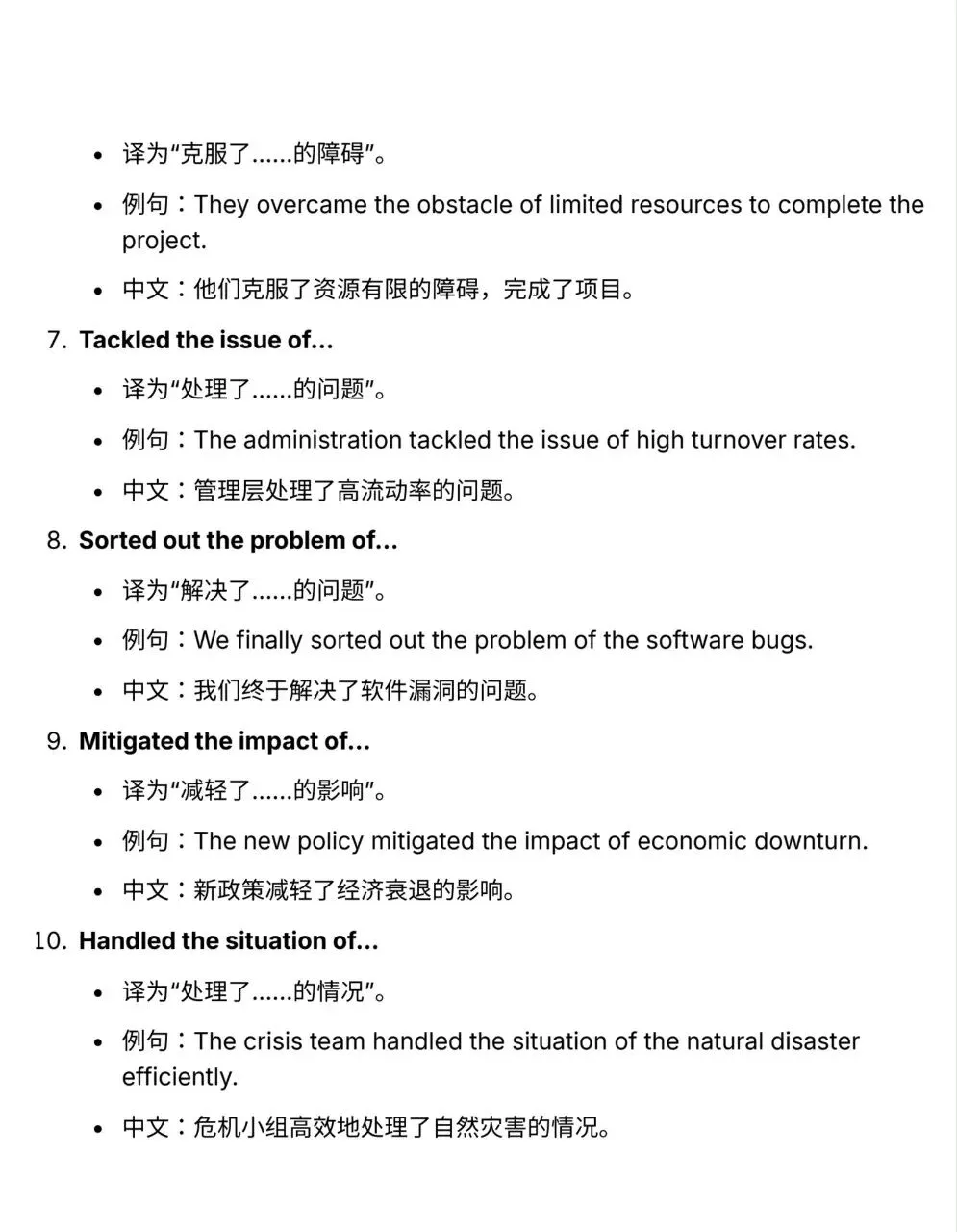 solve,copewith,handle,tackle,resolve等关键词锁定答案。