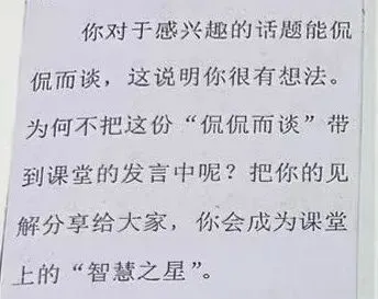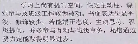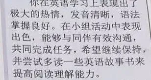 成长册里各科老师都给了个打印版简短评语。小木头数学成绩最好,明显的,数学老师依旧是最喜欢他、对他最满意的人。评语中用了“整天乐呵呵、聪明懂事”等饱含感情的词语,其次音乐老师也评价他“活泼可爱、聪明伶俐”,然后是英语老师,说他“表现出极大的热情、发音清晰、语法掌握良好”。只有语文老师兼班主任依旧对他几分无奈和恨铁不成钢,说他课外聊感兴趣的话题能“侃侃而谈”,但课堂上表现被动,学习和参加班级事务都缺乏主动性,特别提到“书面表达平淡,修饰较少”,可谓点到了他作文的筋。小木头的天性是随和与服从,要他有自己的主见和能动性,目前看来还有点难。