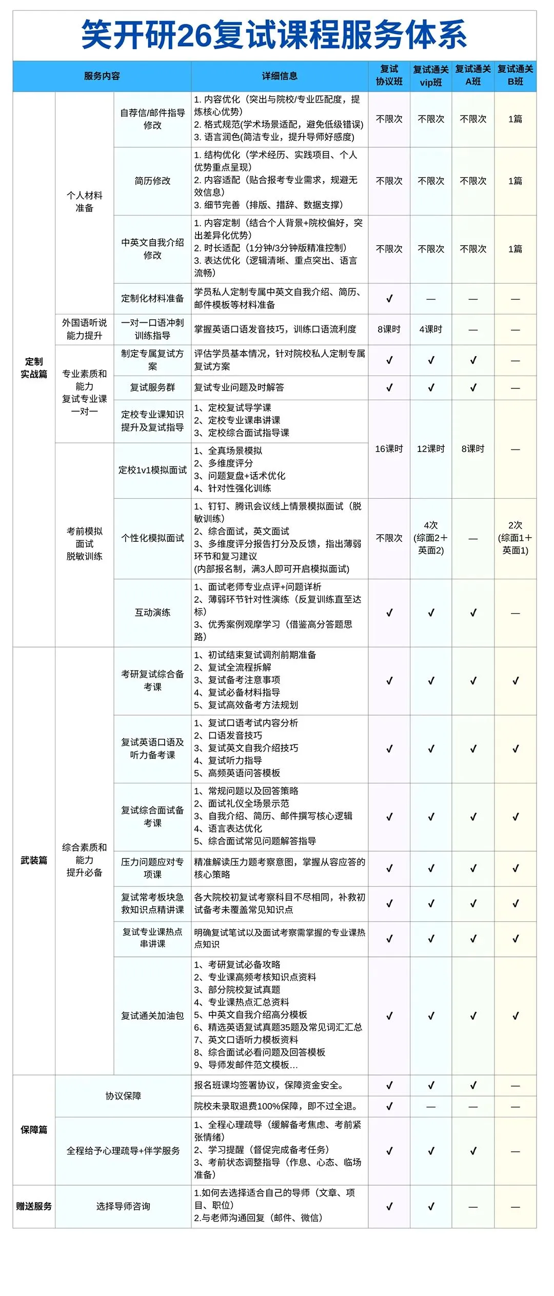 各位26考研的同学们,初试首战告捷,大家辛苦了!然而,初试只是入场券,复试方为决胜之役。我们深知“初试定资格,复试定结果”,短暂的休整后,请务必全力投入复试备战。为助大家一举成功,“笑开研”复试课程全面升级,这一次,我们陪你一起,冲向胜利,助你稳稳上岸!