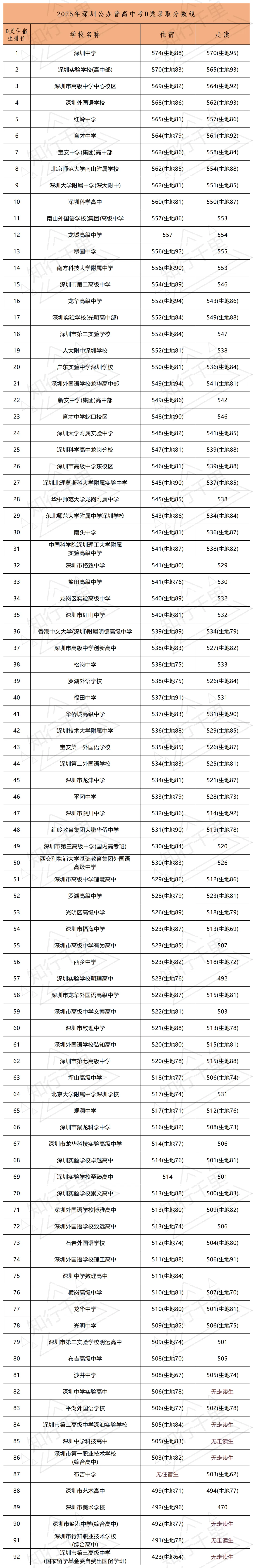 2025年深圳92所公办高中录取分数线权威发布!深中574分领跑,各校排名一目了然.