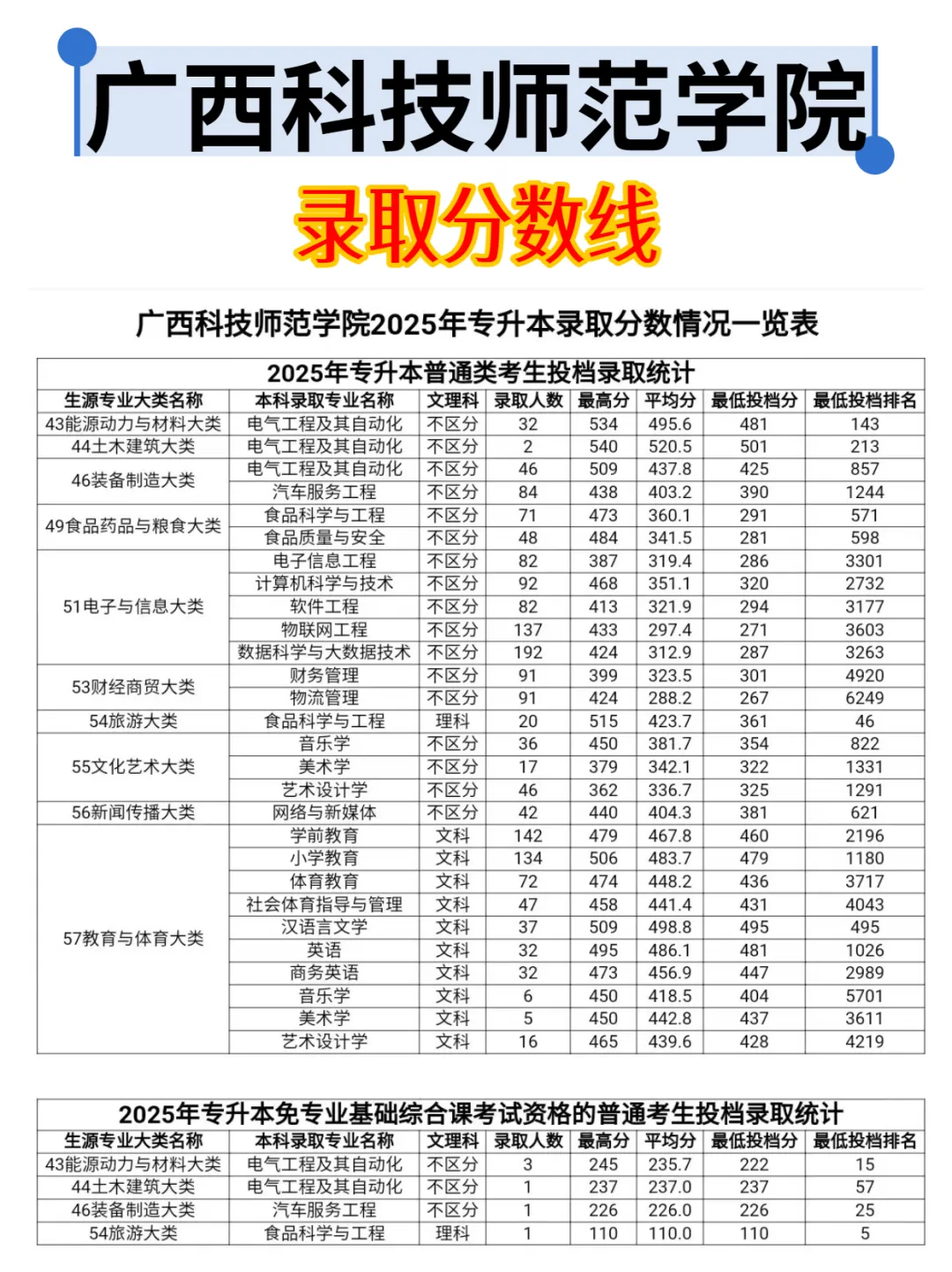 广西河池学院、广西科技师范学院、贺州学院等公办院校已陆续发布 2025 年专升本各专业录取分数线。
