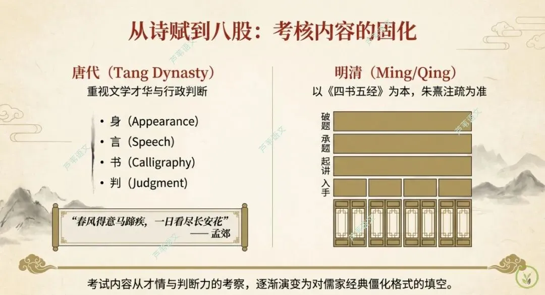 在高考语文中,科举制不仅是文言文翻译的高频背景,更是论述文写作中关于“公平、人才、制度变革”的绝佳素材。