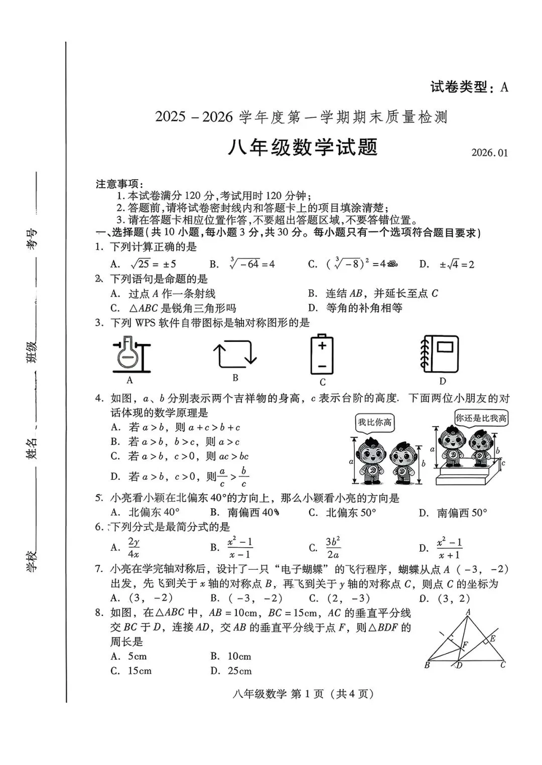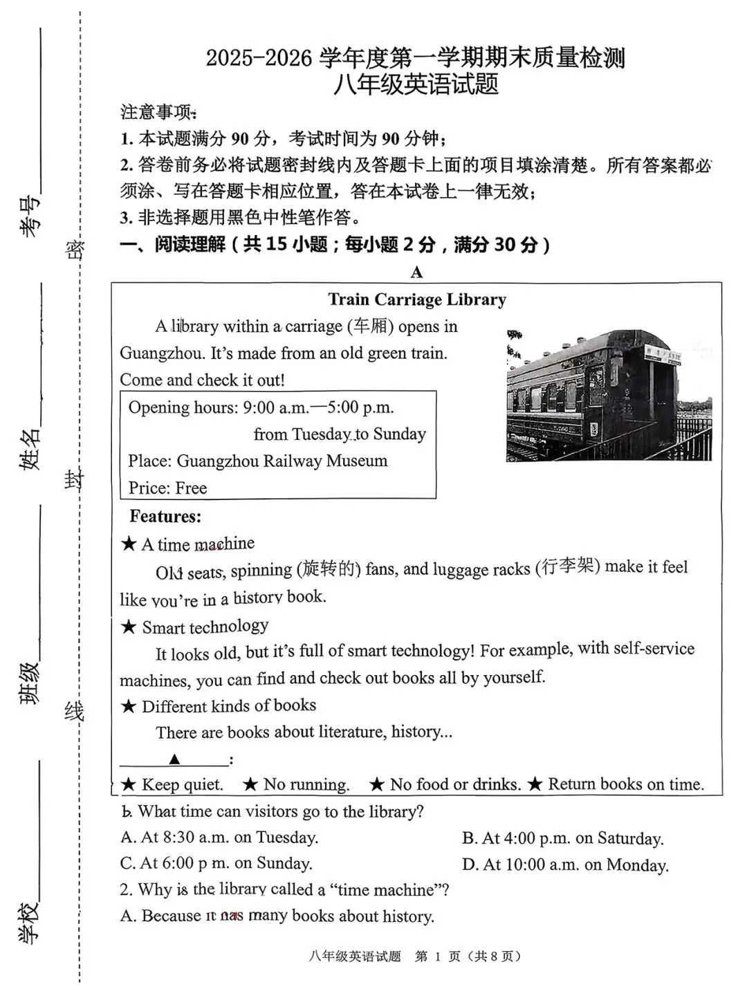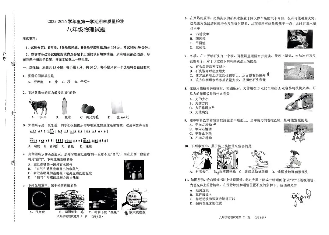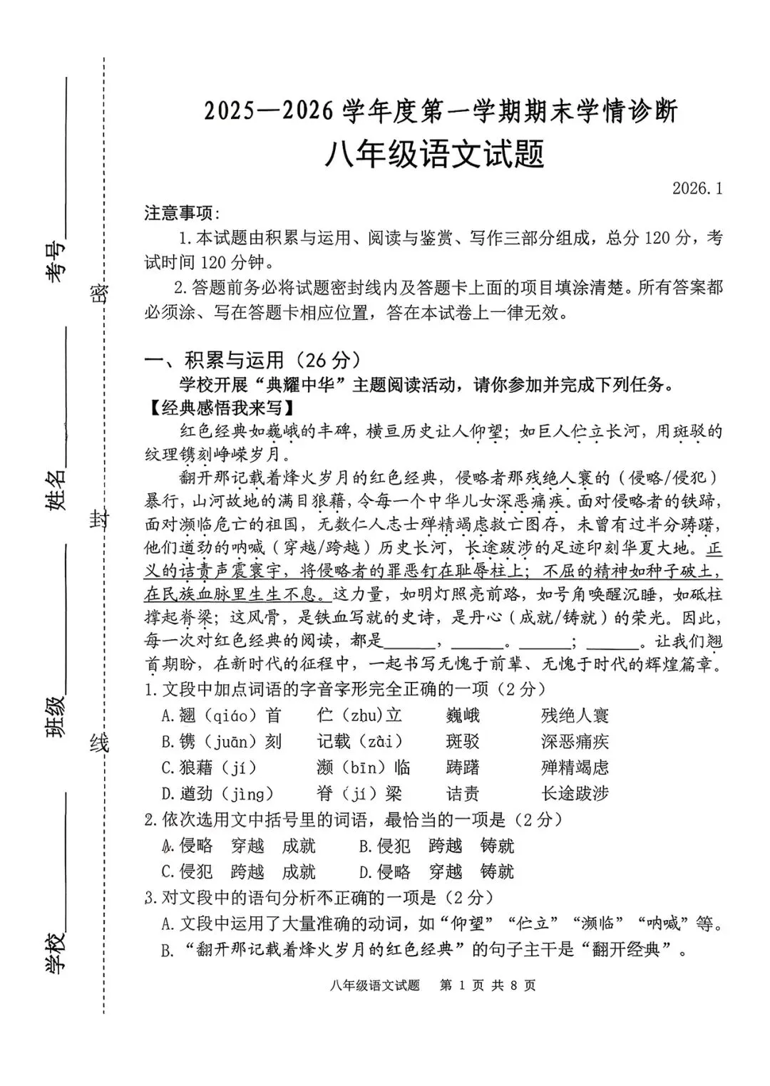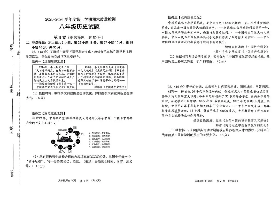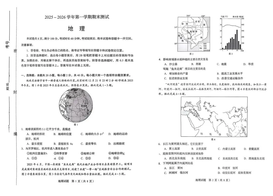 【考试真题】潍坊地区奎文、潍城、寒亭、坊子四区六年级期末试卷(考试时间2026.01.27)