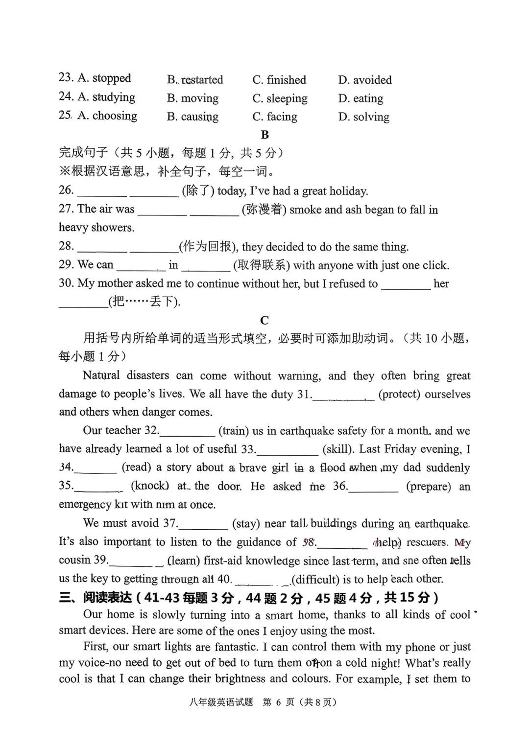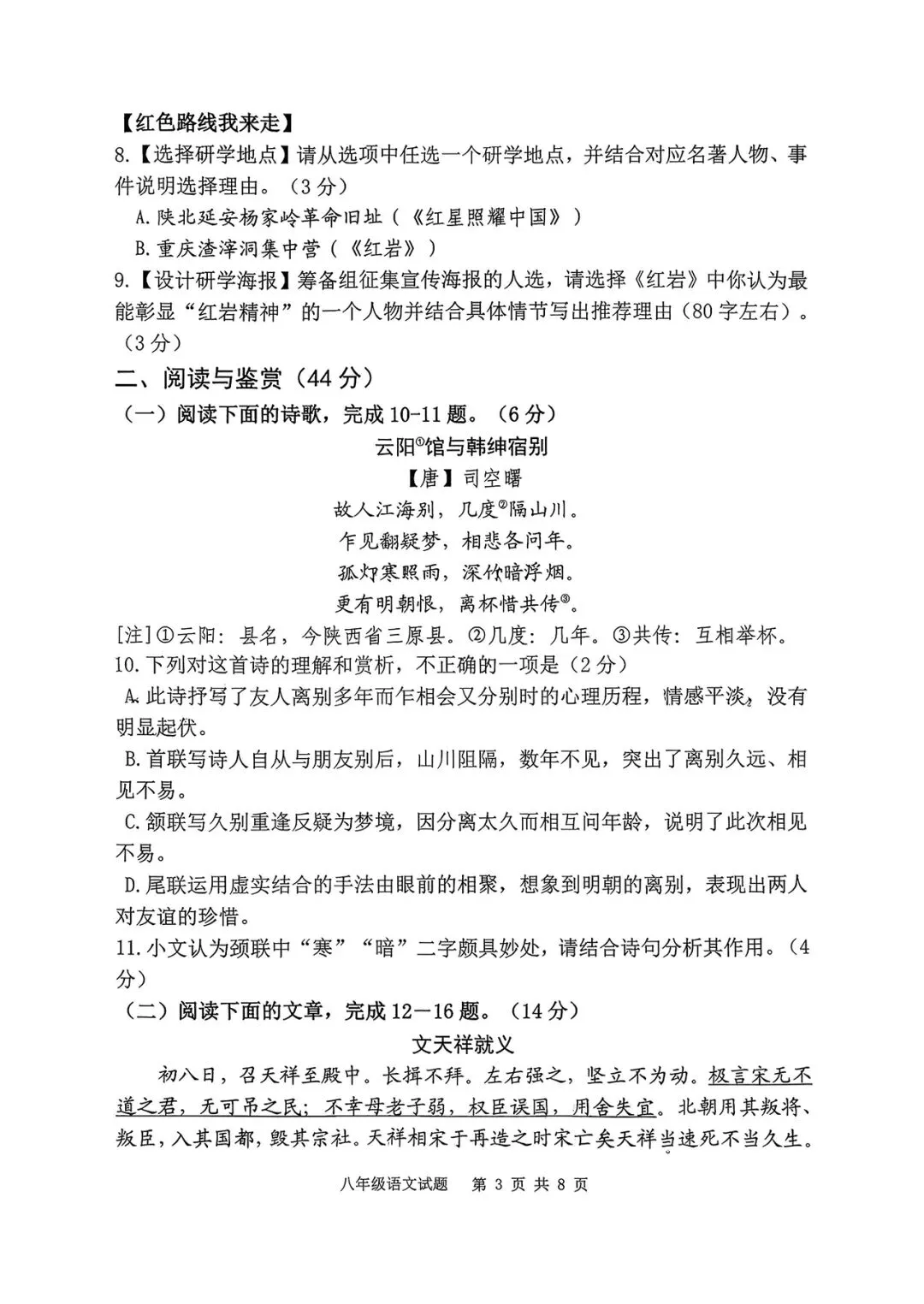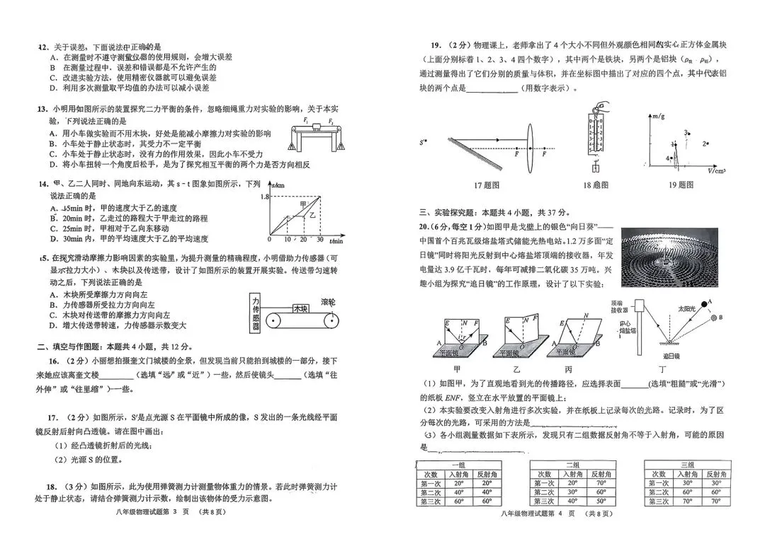 >【考试真题】潍坊地区八年级期末试卷全套(语文数学英语物理生物地理历史化学)