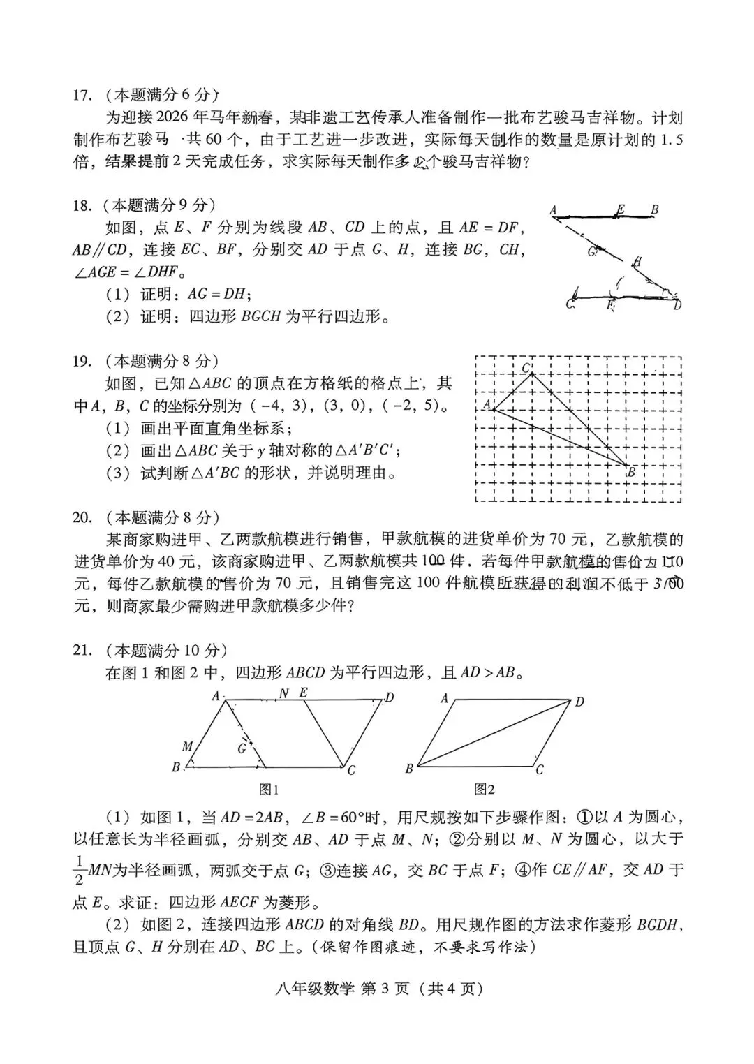 【考试真题】潍坊地区奎文、潍城、寒亭、坊子四区三年级语数英期末试卷(考试时间2026.01.27)