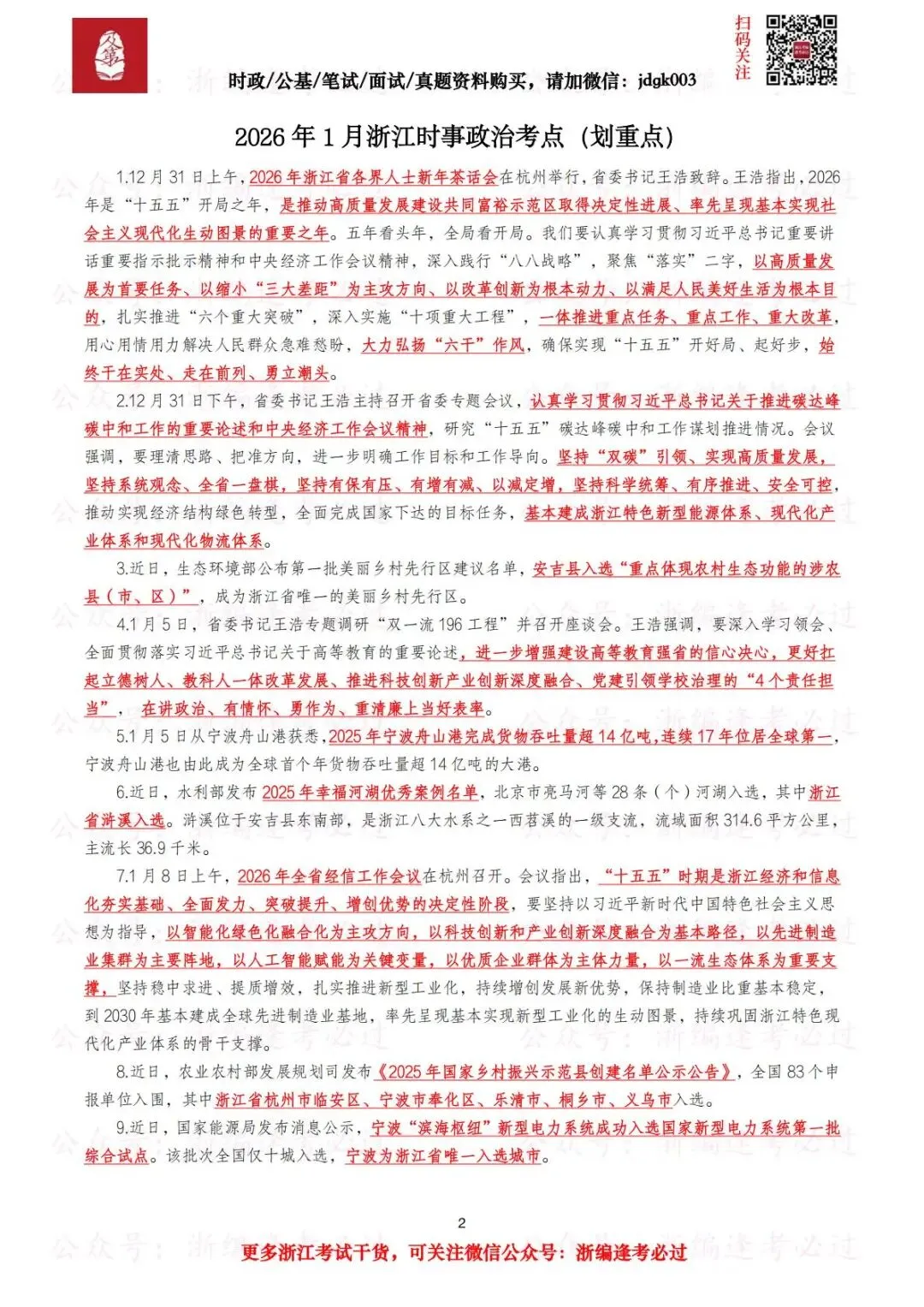 【浙江时政考点】内含2025年2月—2026年1月浙江时事政治考点,全部为浙江地方时政知识点,包含浙江省纪委十五届五次全会、浙江省委经济工作会议、中共浙江省委十五届八次全会、中共浙江省委十五届七次全会、2025年浙江省委一号文件等,重点加红并加下划线,共计51页;