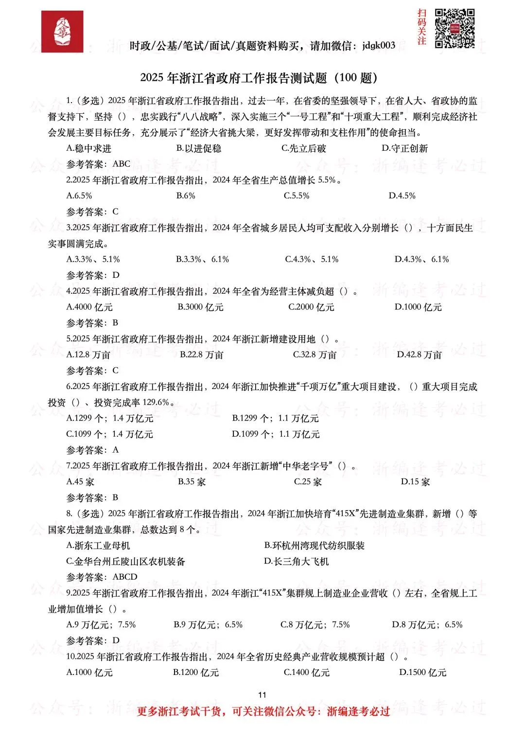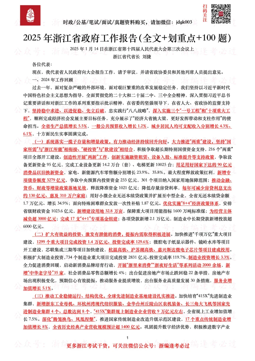 【浙江政府工作报告】内含2025年浙江省政府工作报告(全文+划重点+100题),总计22页;