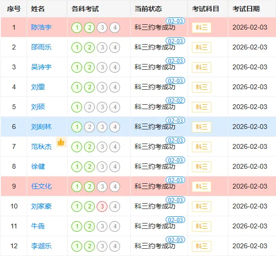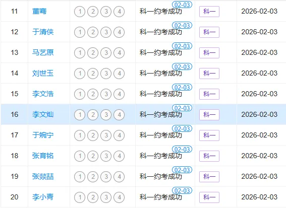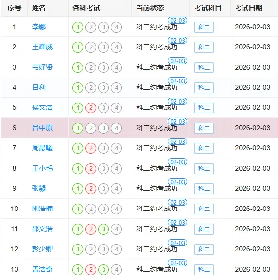 科目二考试名单