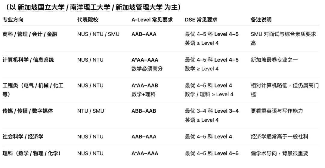 新加坡本科常见录取要求