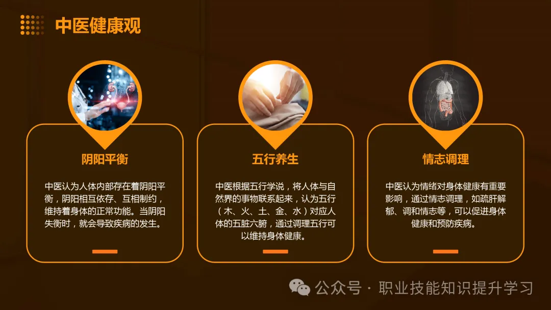- 阴阳五行学说:理解阴阳的对立统一、互根互用、消长平衡等关系,以及五行的相生相克、乘侮规律,用于解释人体生理病理现象。