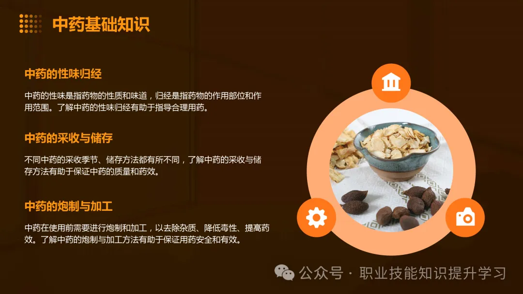 - 中药基本理论:掌握中药的四气五味、归经、升降浮沉等药性理论,了解中药的配伍禁忌(如十八反、十九畏)、用药禁忌等知识。