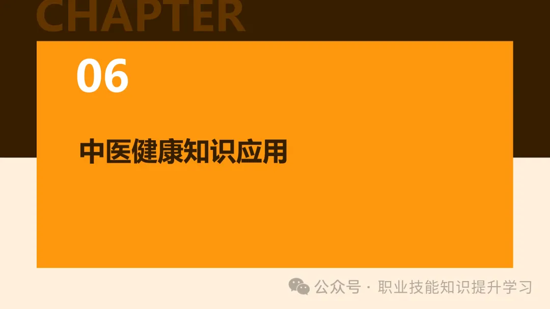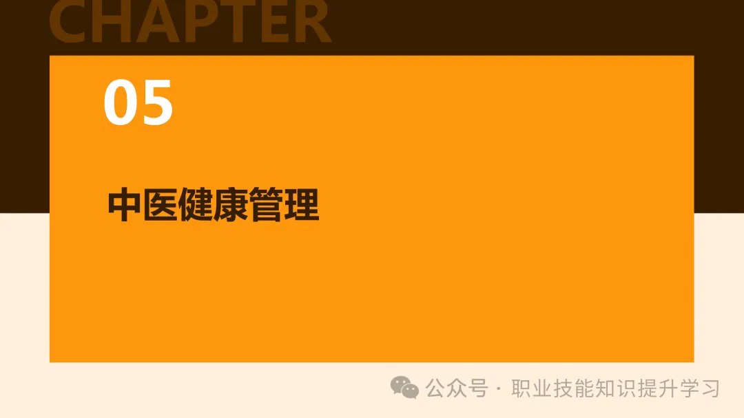 《中医健康管理技术》(人社部能建中心)考试学习:中医保健学、营养学与心理学、中医疾病预防、中医健康管理、中医药学常识