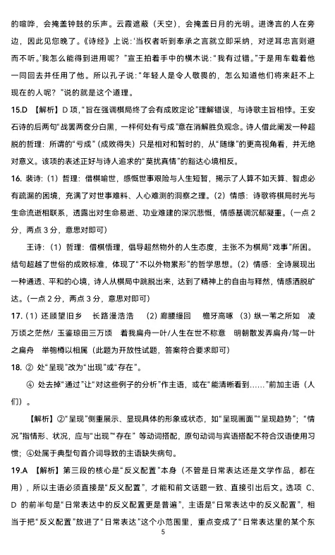 16、两首同题诗均以"棋"为媒介,但诗人寄寓的哲理与情感却遇然不同。请简要分析。(6分)