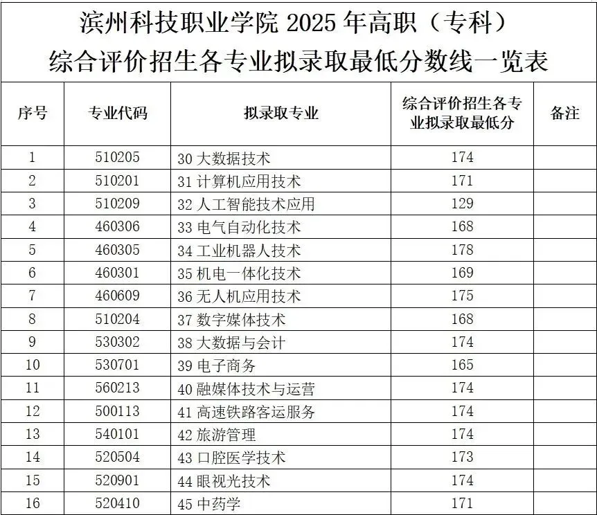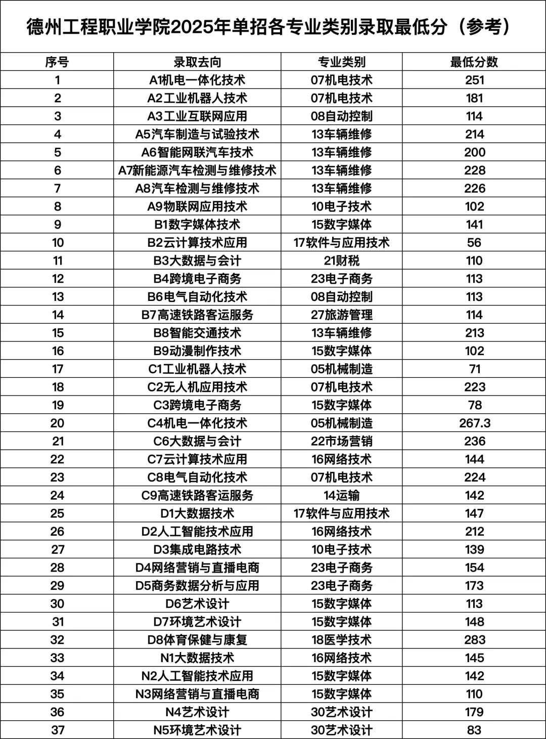 烟台汽车工程职业学院2025年单招综评录取分数线