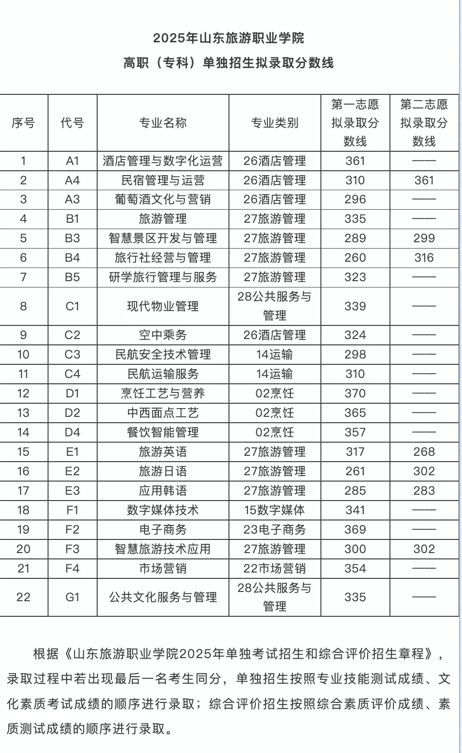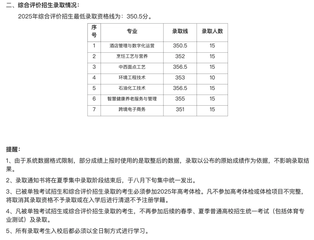 青岛酒店管理职业技术学院2025年单招综评录取分数线